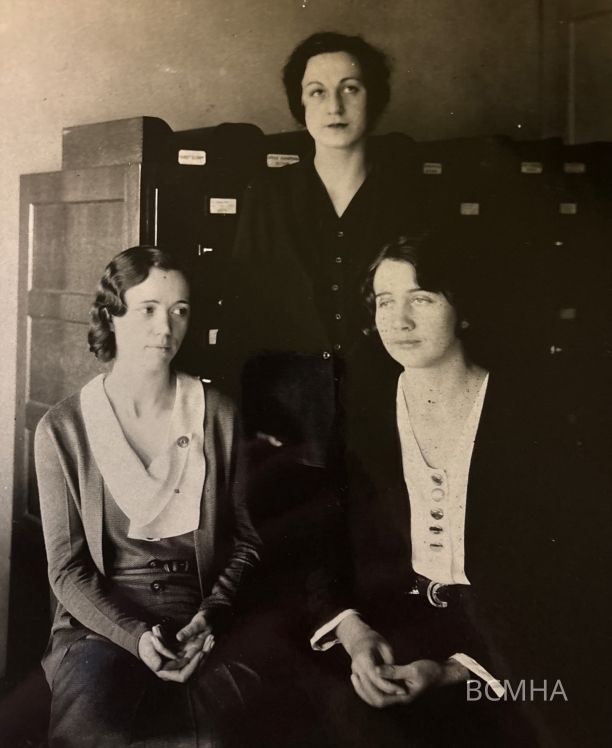 Boulder City; U. S. Bureau of Reclamation personnel, December 15, 1931; left-right: Hannah Houn, stenographer; Cecile M. Dotson -Crowe, mail and files clerk; Rose V. Crippa, stenographer; USBR- Wash. no. 1003/temp. no. 633; Ben Glaha, photographerLexicon
