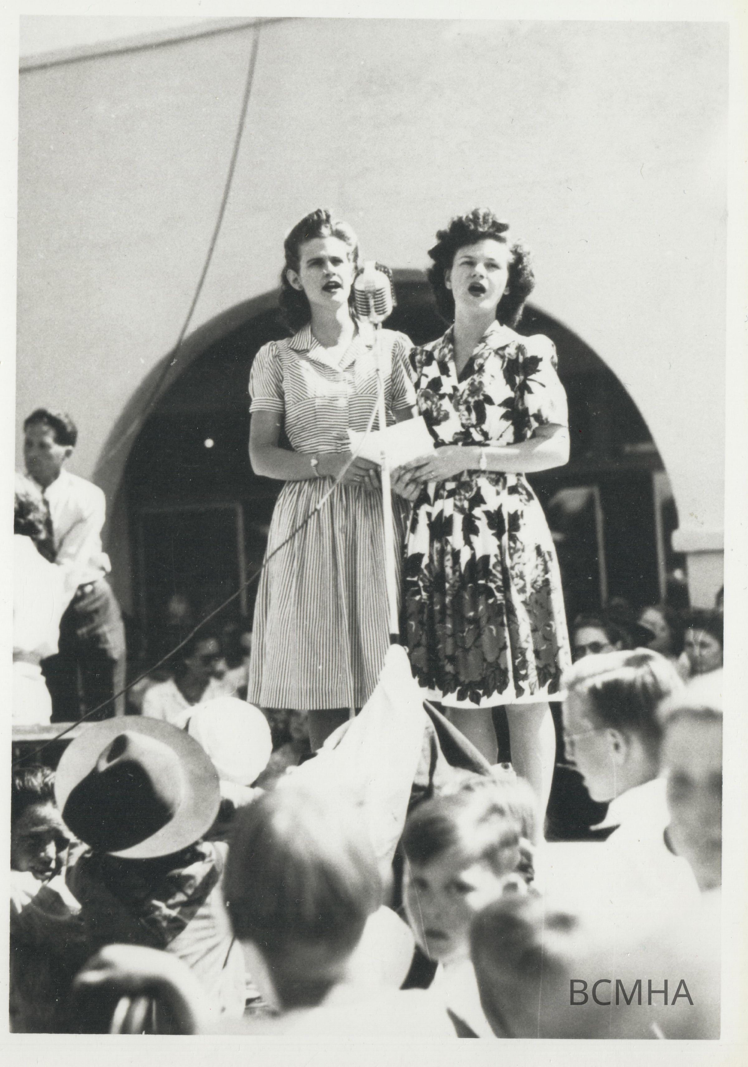 [l-r in front of mic: Eileen Buck (Conners) and Joyce Wheeler]Collection