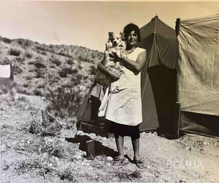 Williamsville NV: Edith Powell; “the first lady resident of Boulder City,”;13 August 1931; the dog’s name is Teddy; UNLS; Union Pacific Railroad CollectionLexicon