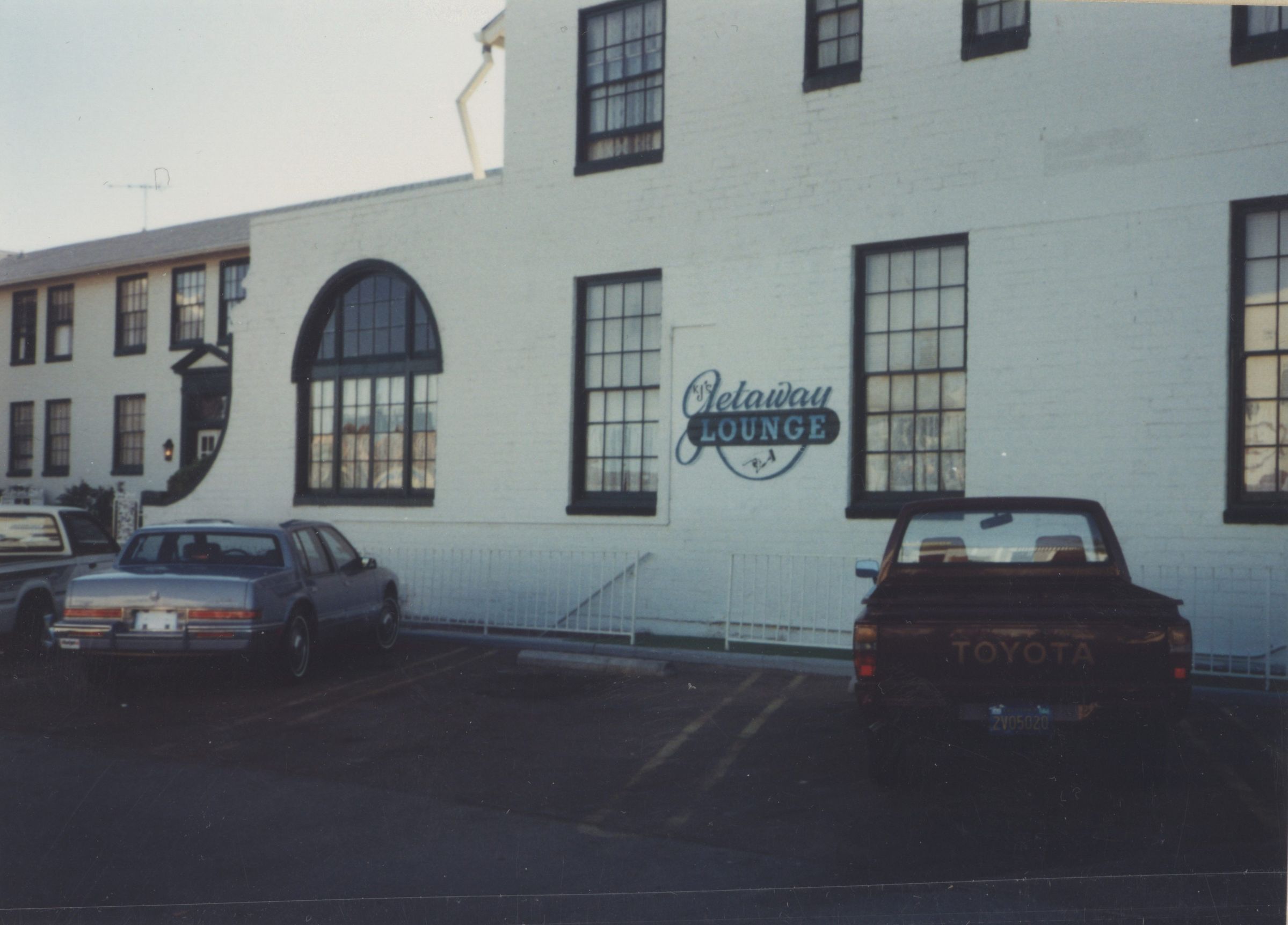 Boulder Dam Hotel; sign for K.J.'s Getaway Lounge October 12, 1990; Dennis McBride photosCollection