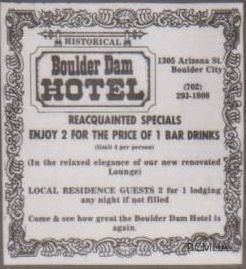 Boulder Dam Hotel Advert.Dimensions
