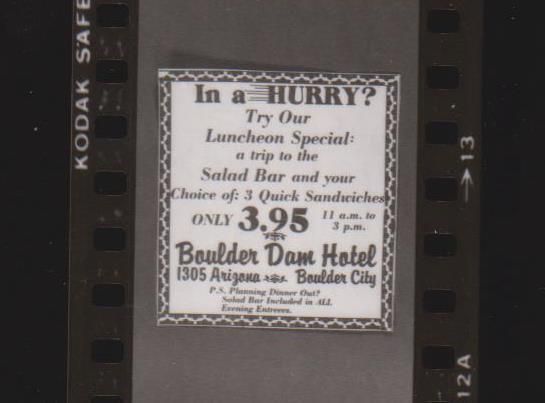 Boulder Dam Hotel; $3.95 luncheon advertisement; BCN,; July 23, 1981; neg, 0640; Dennis McBride photosLexicon