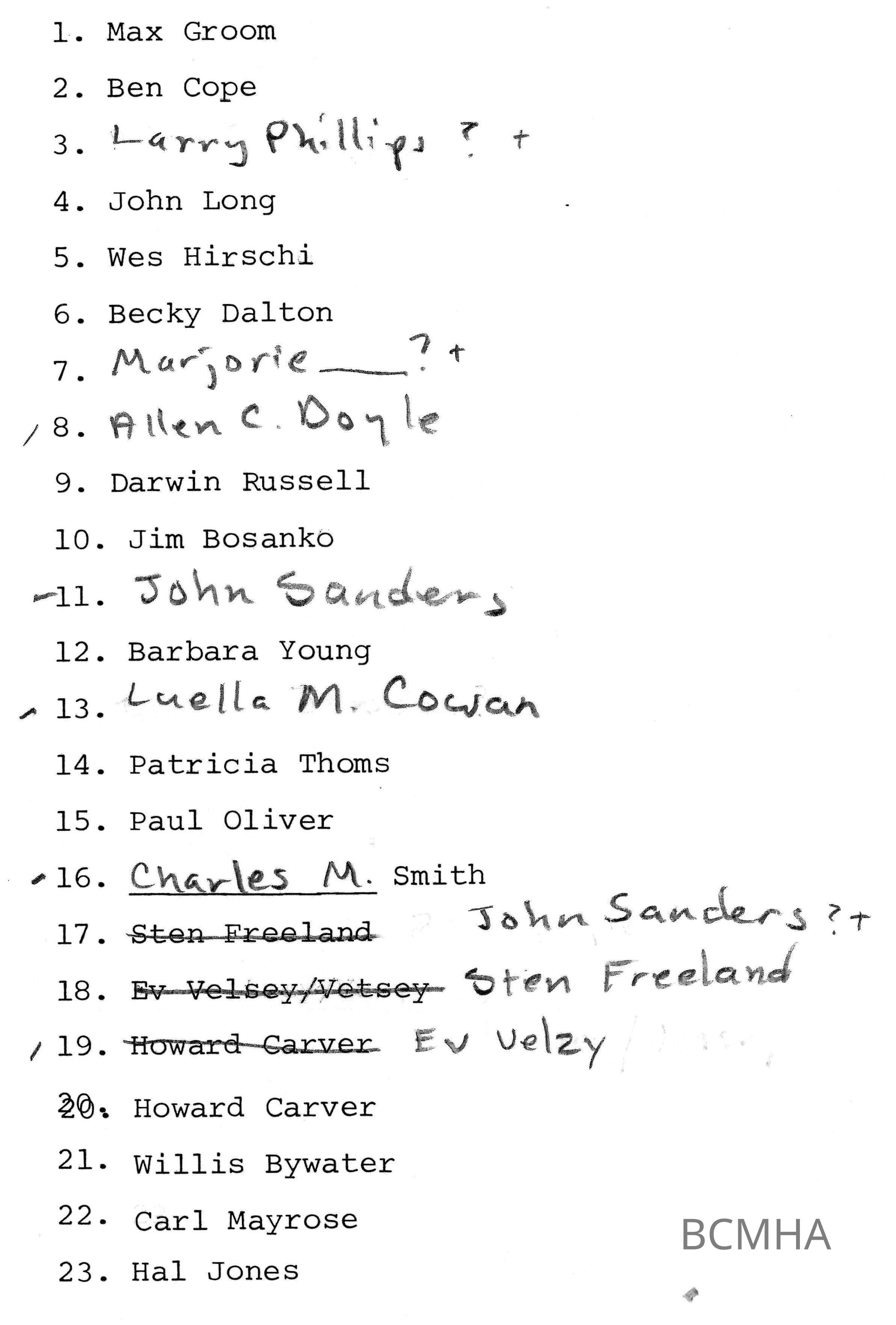 Notes: 3 scans associated: name (list of names) number (photocopy with numbered individuals) photo (scanned photo)
