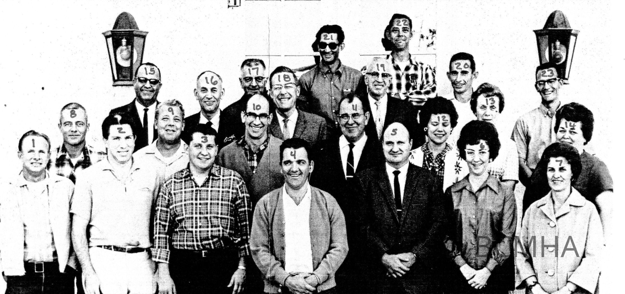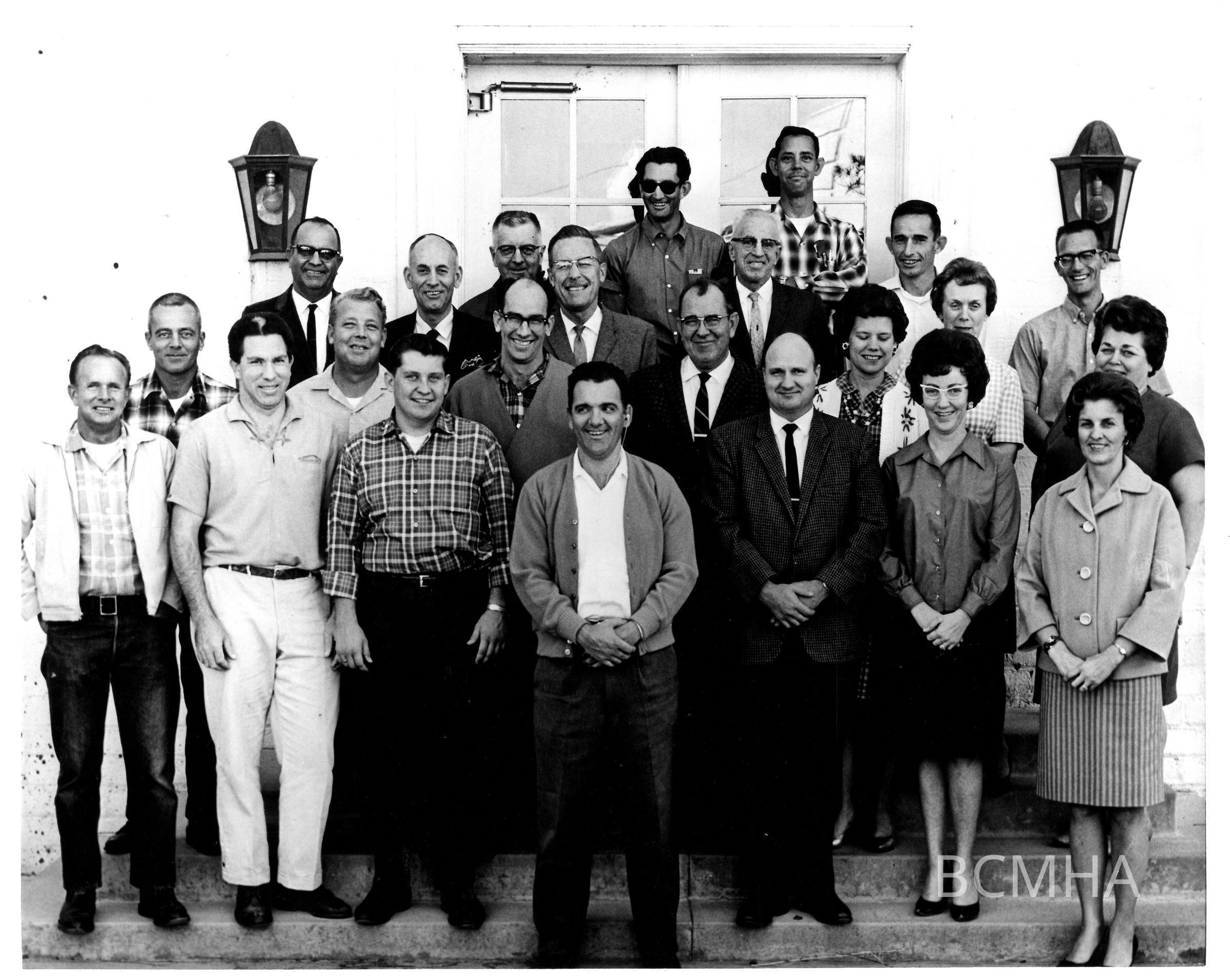 Boulder Dam Hotel; Bureau of Reclamation personnel posed in the East Terrace of Boulder Dam Hotel 1967; Howard Carver photoCollection