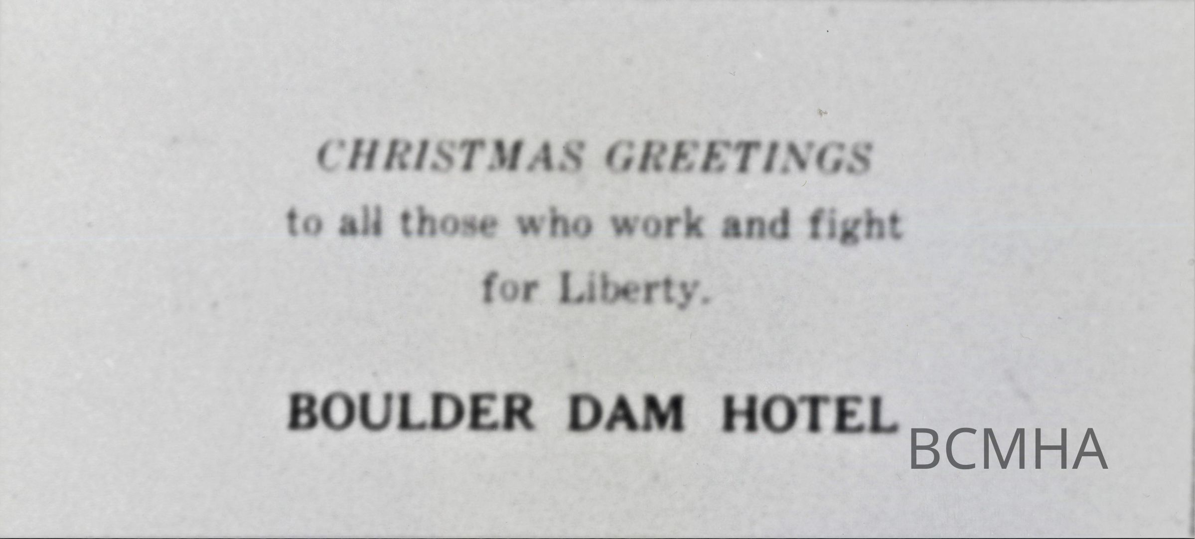Boulder Dam Hotel Christmas advertisement; Boulder City News, December 25, 1942 p. 3Collection