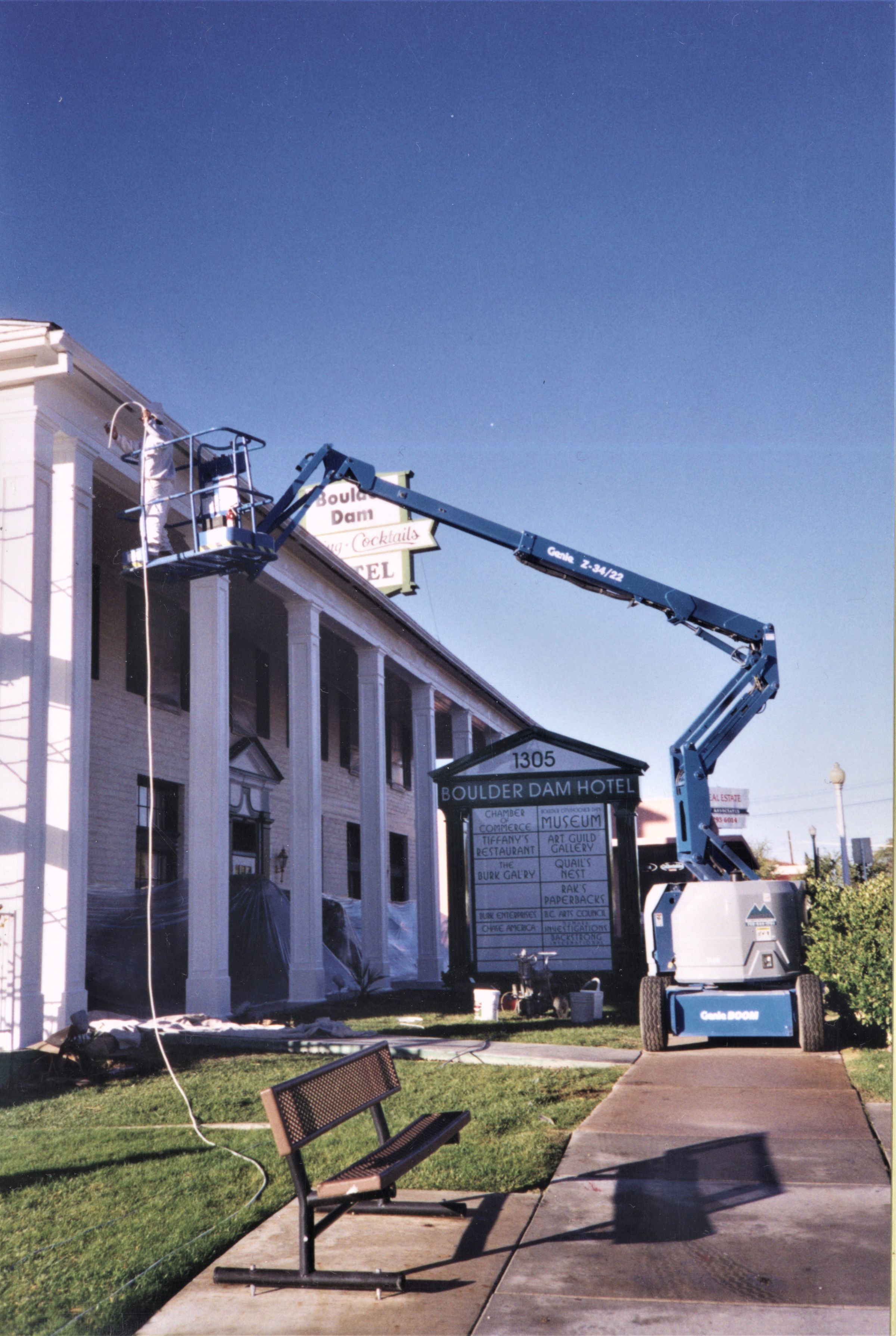 Boulder Dam Hotel column reconstruction November 11, 1999; Dennis McBride photoCollection