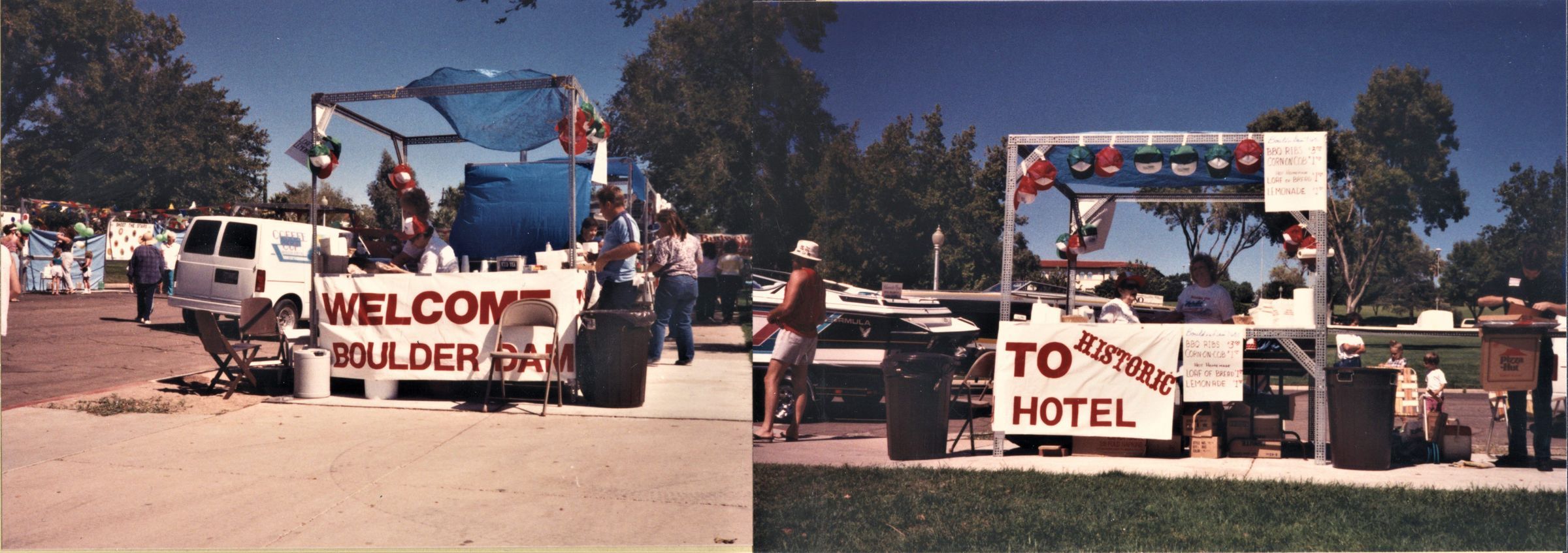Boulder Dam Hotel concession booth in Bicentennial park for hydroplane races; September 24, 1988; Dennis McBride photoCollection