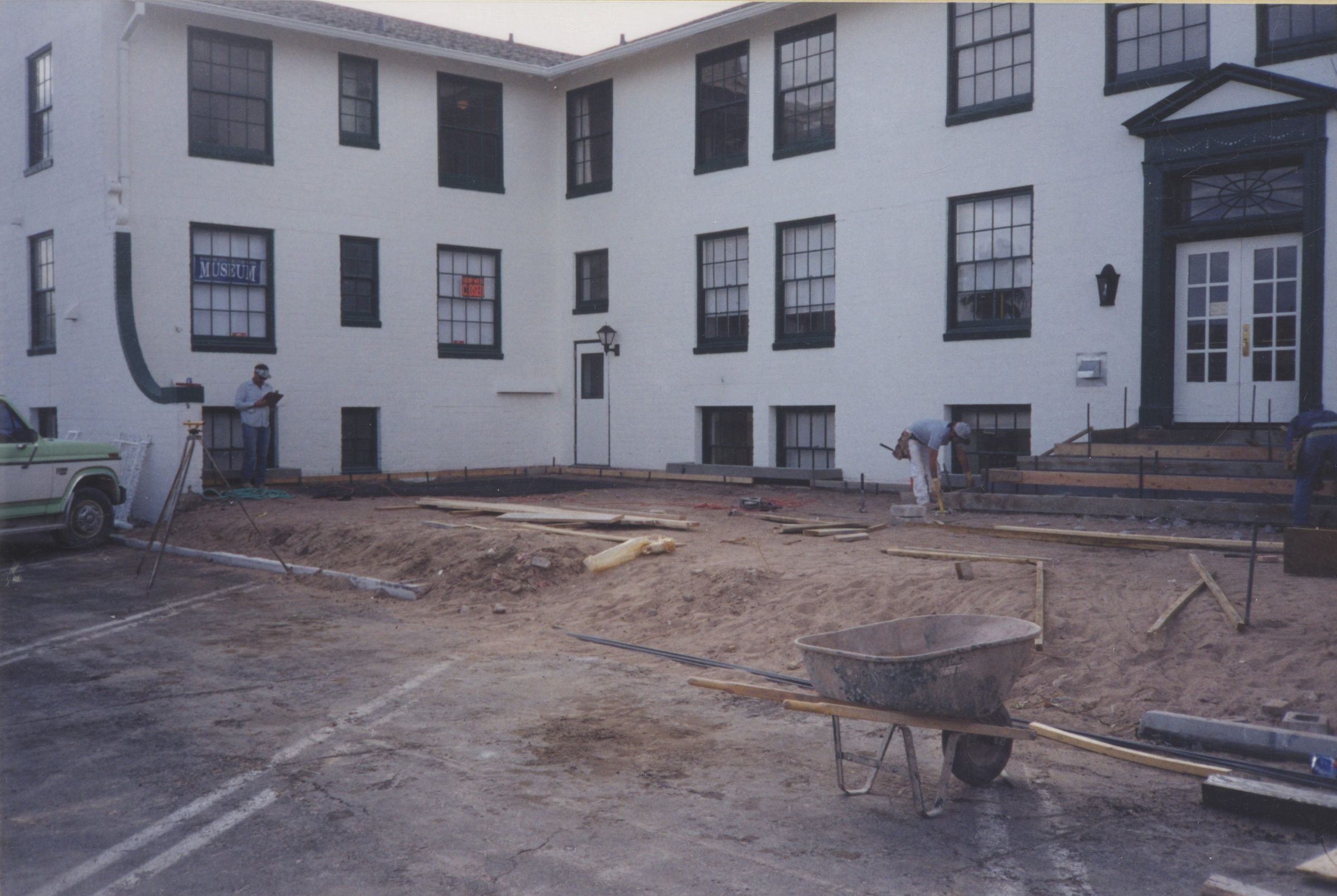 Rebuilding the Boulder Dam Hotel east court patio and wall- color; January 24, 2000; Dennis McBride photo