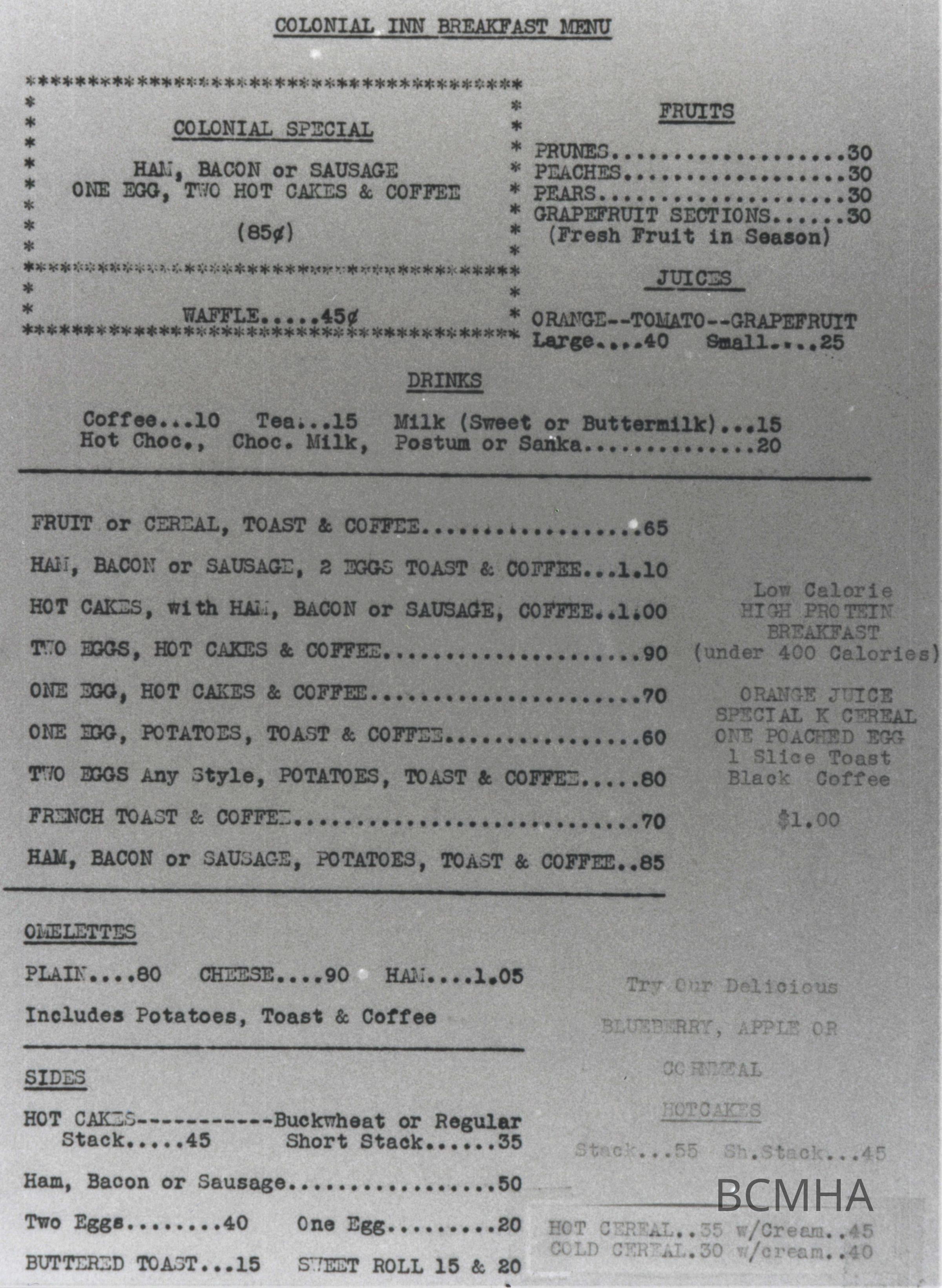 Boulder Dam Hotel dining room breakfast menu; ca. 1961; Jackie Brown photoCollection