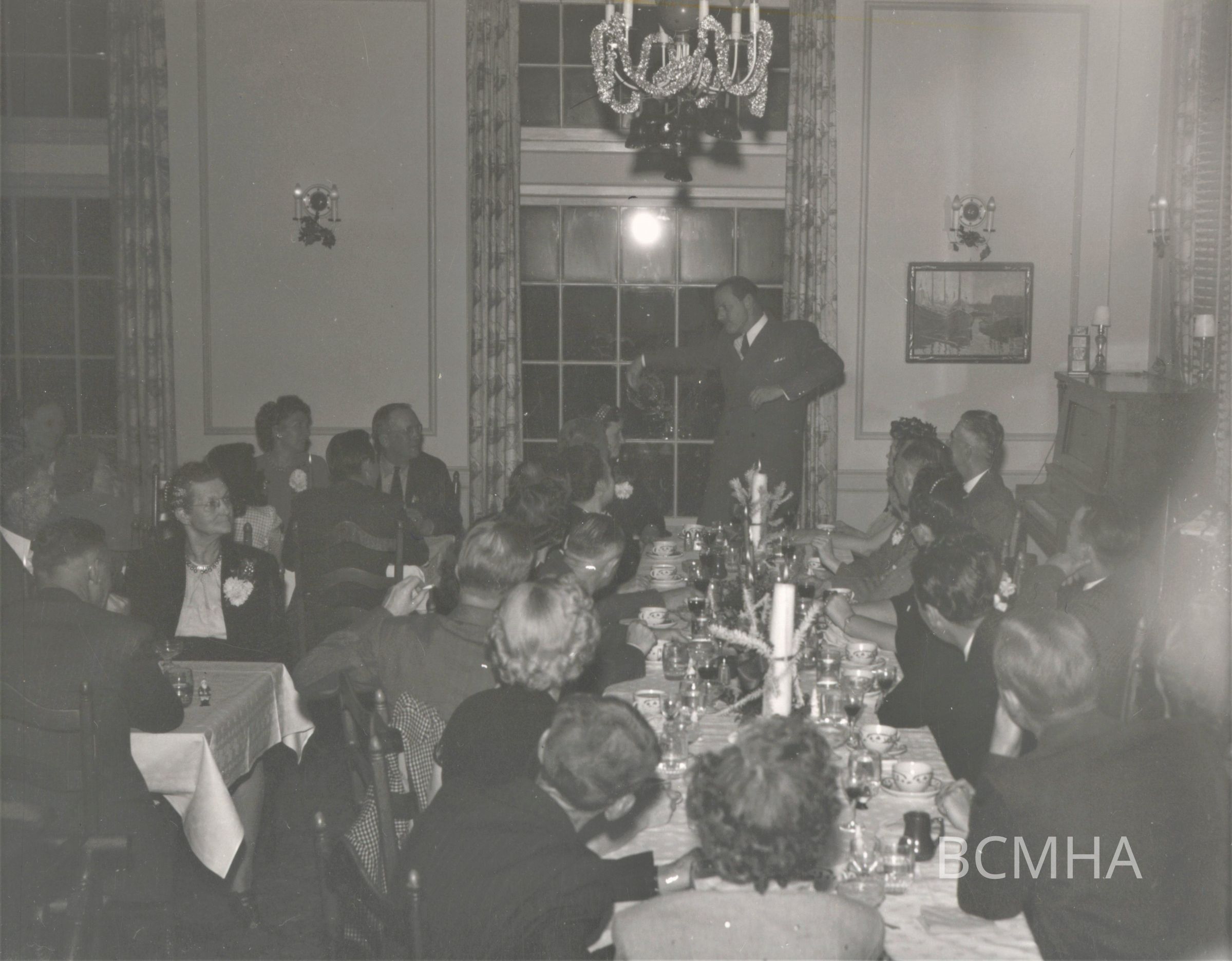 Boulder Dam Hotel dining room; dinner for Hoover Dam guide force; December 13, 1946; John E. Western photoCollection