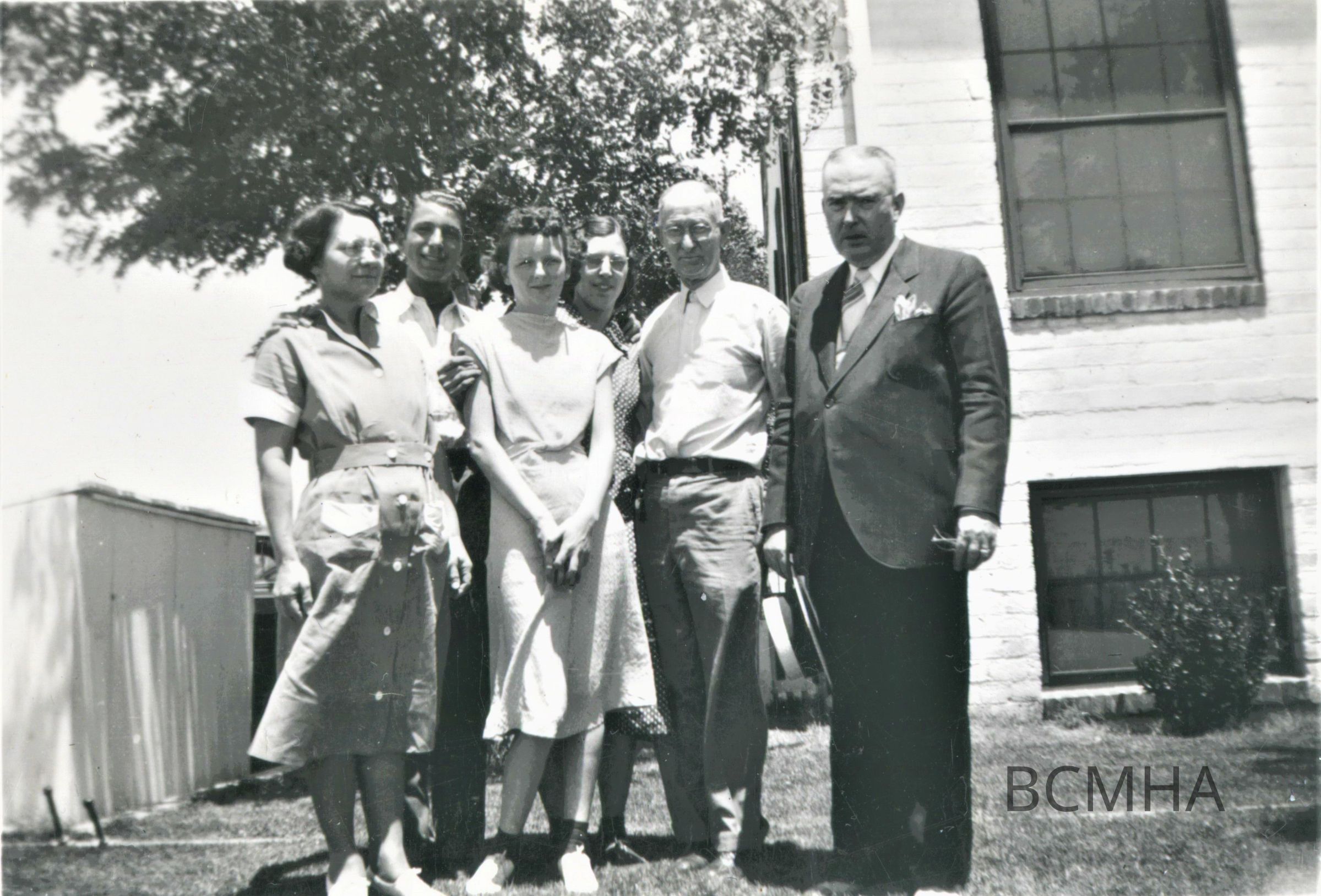 l-r: Judy Moore [housekeeper]; ?.?: Rosalie Eastman; Alex Dixon [houseman]; Leslie C. "Tommy" Thompson; night clerk; Judy Moore photoCollection