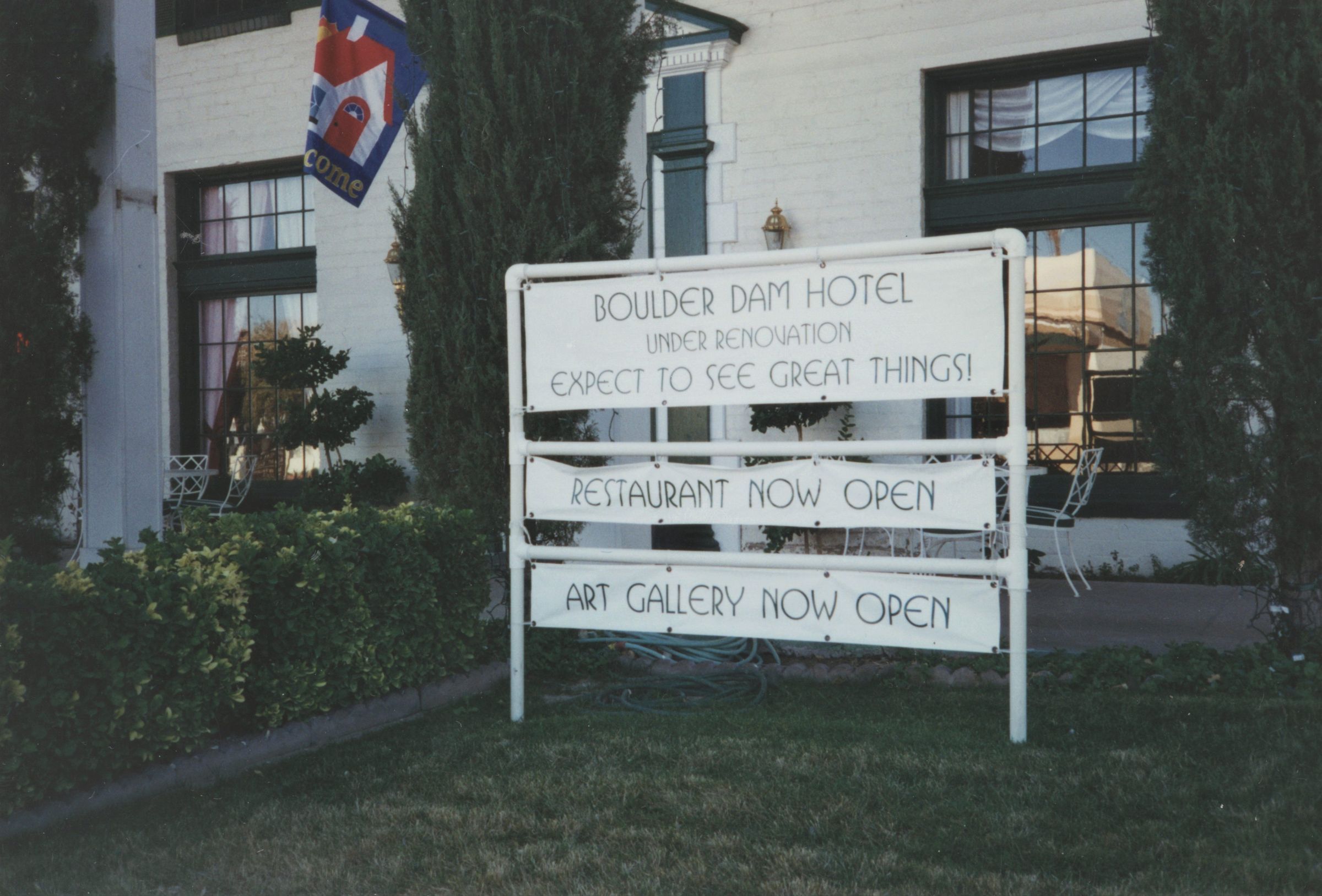Boulder Dam Hotel renovation sign, January 9, 1997; Dennis McBride photosCollection