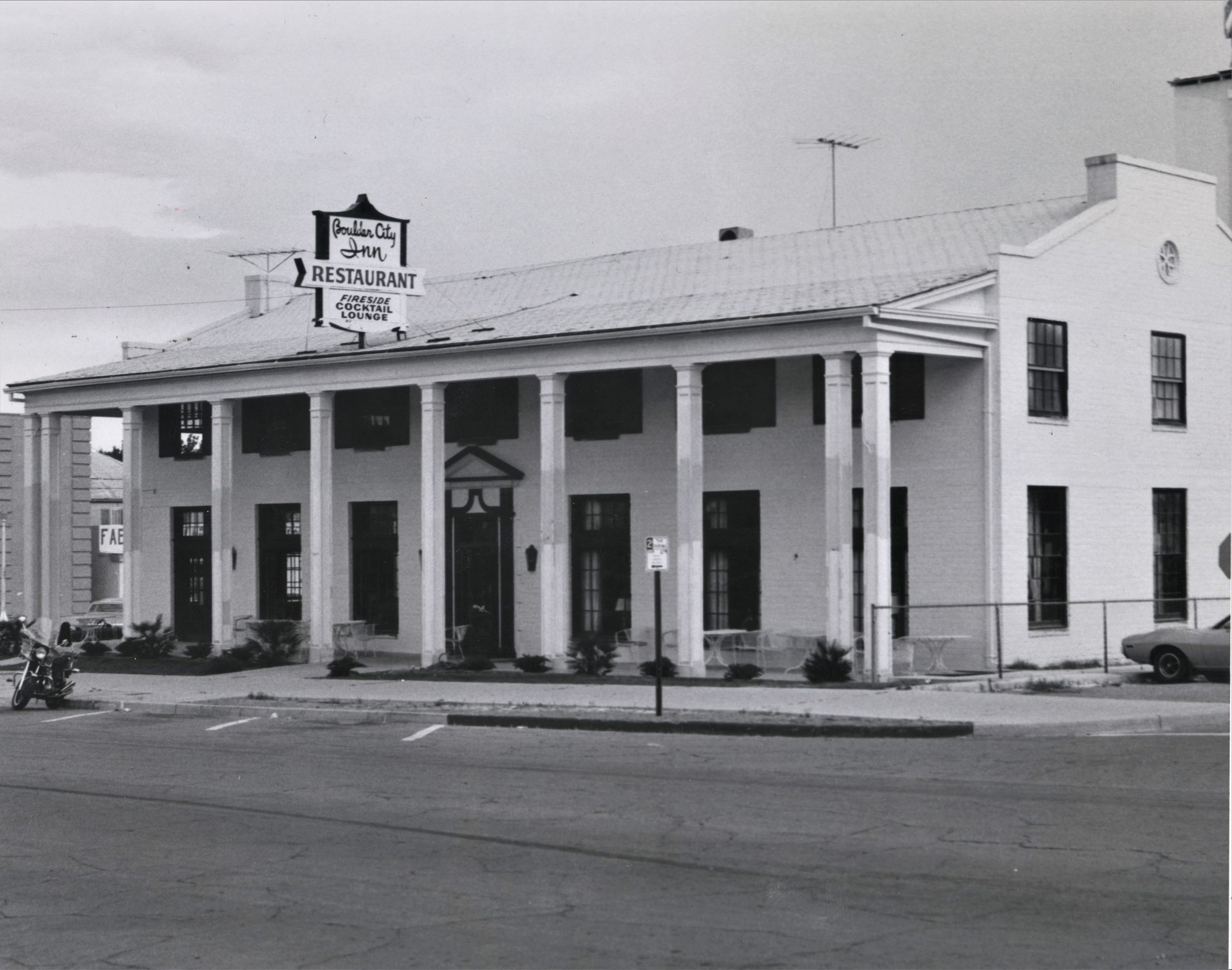 Boulder Dam Hotel exteriors just prior to the Cliff McCorkle renovations May 1980; neg. #9; Dennis McBrideCollection