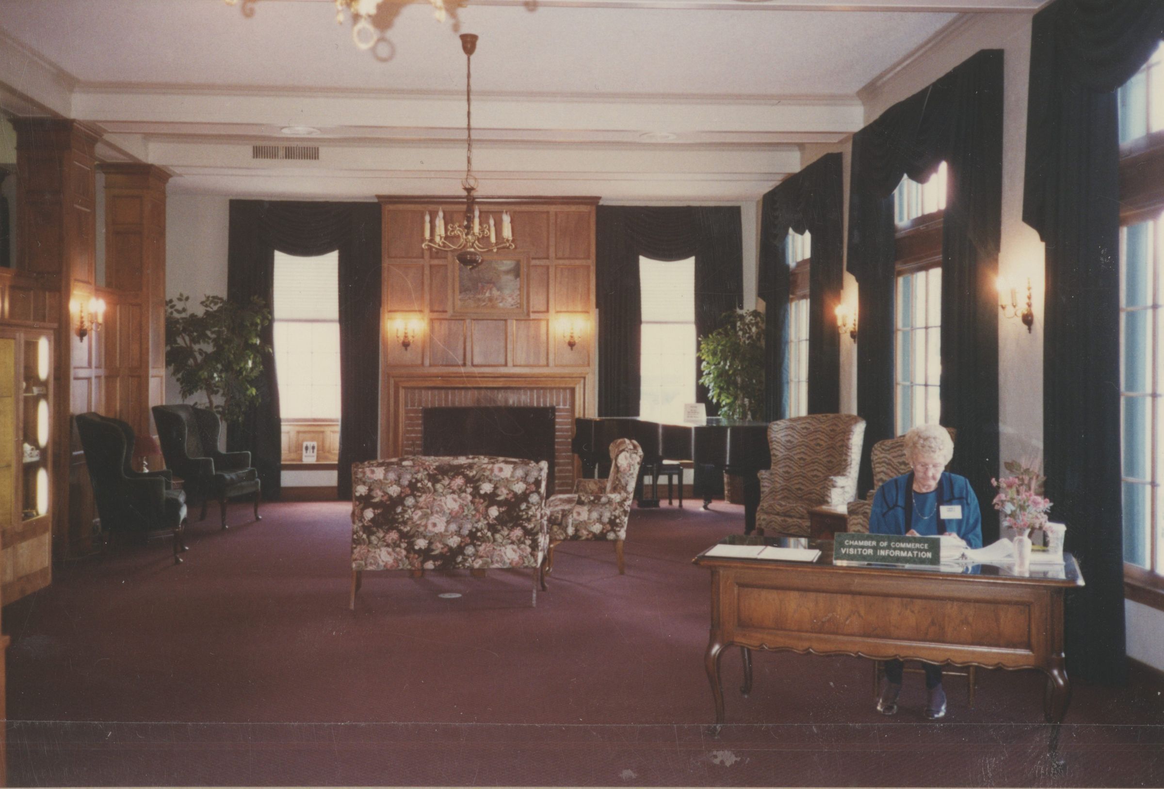 Boulder Dam Hotel lobby with Chamber of Commerce desk, April 10, 1997; Dennis McBride photosCollection