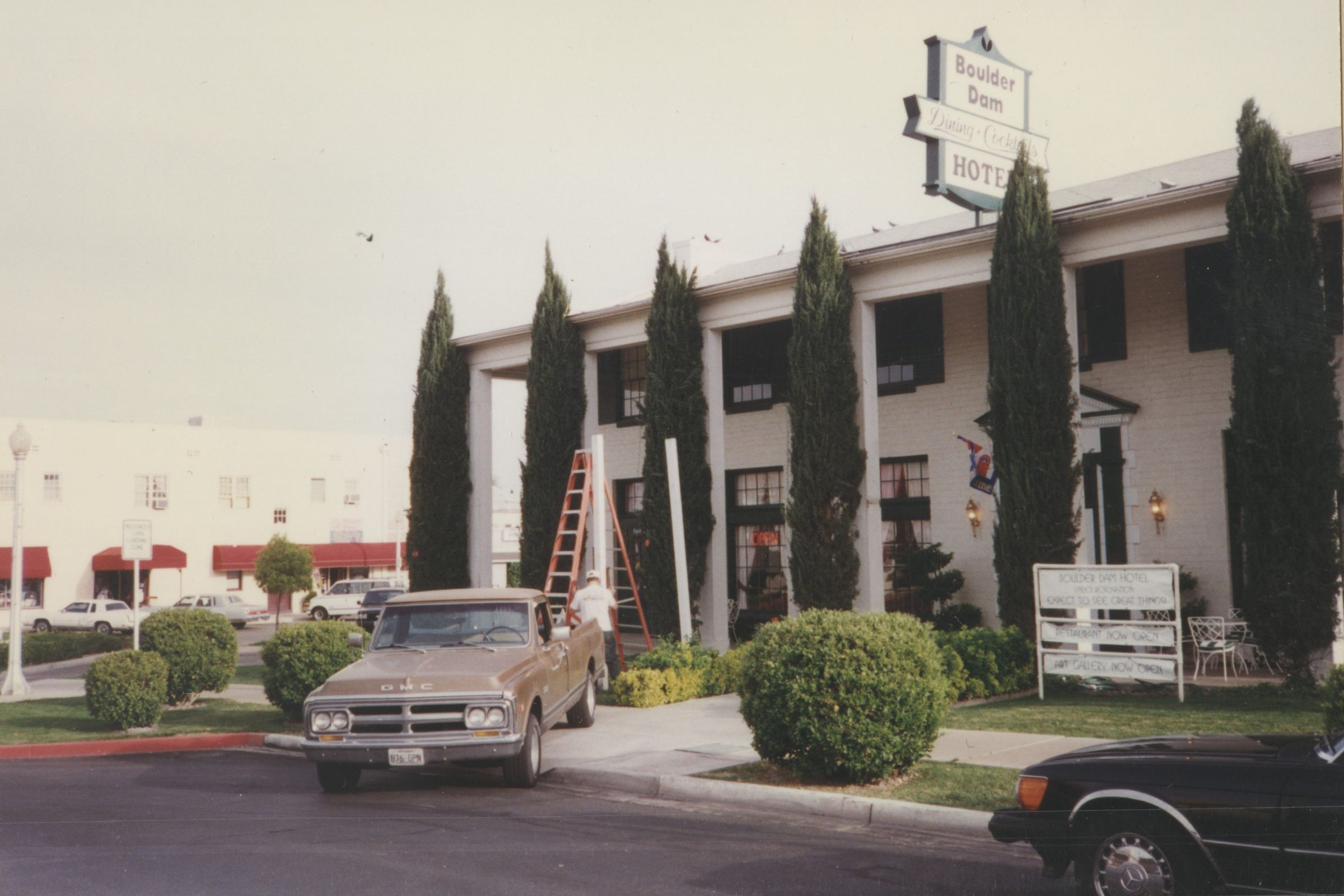 Boulder Dam Hotel shop sign under construction, March 27, 1997; Dennis McBride photosCollection