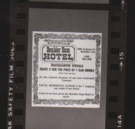 Boulder Dam Hotel; Reacquainted special" advertisement; BCN; August 6, 1981; neg. 0642; Dennis McBride photosLexicon