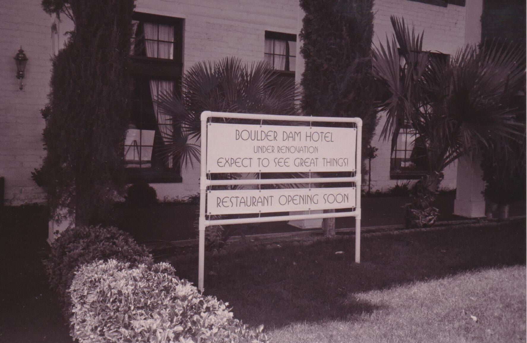 Boulder Dam Hotel renovation sign 1984Entry/Object ID