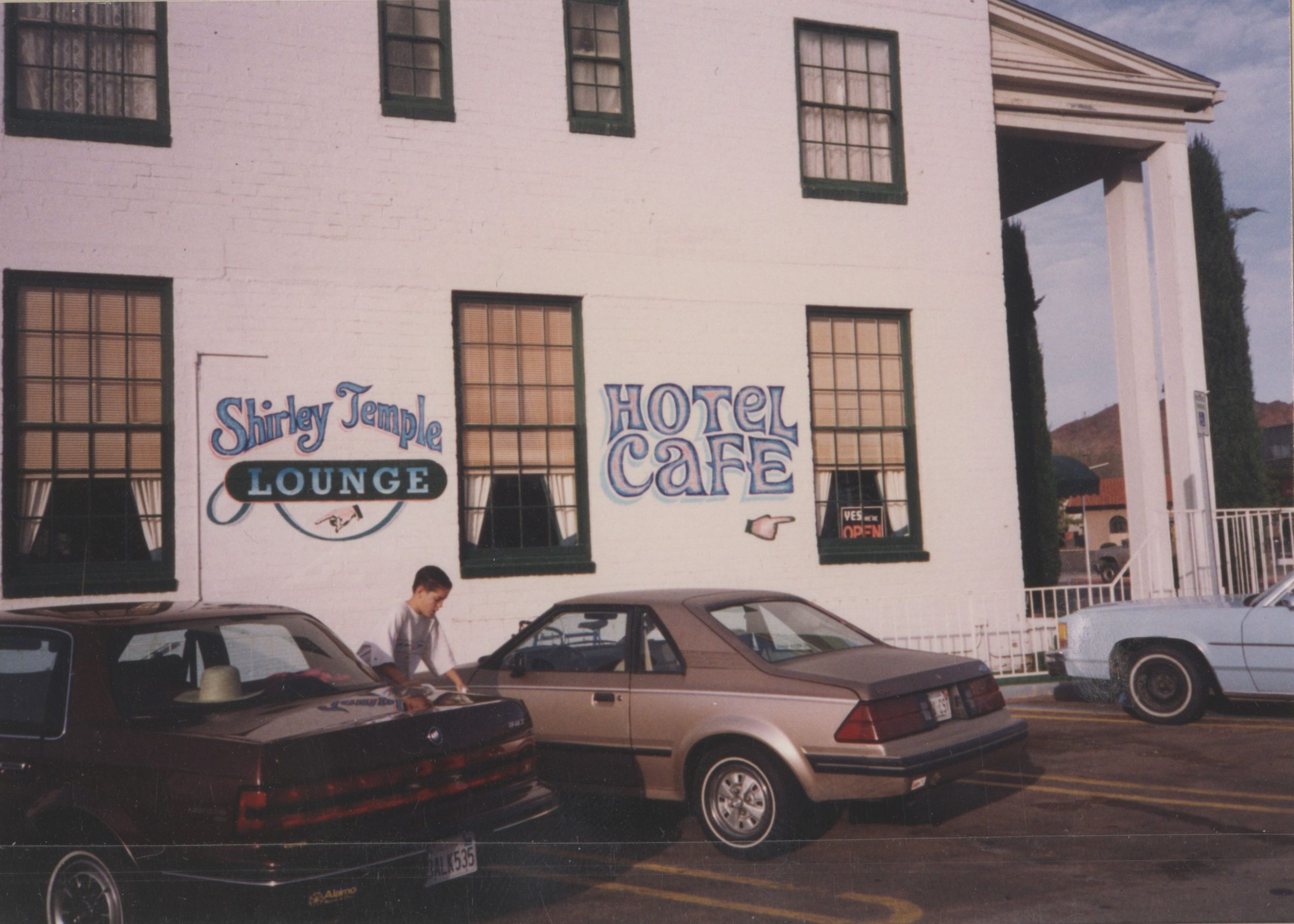 Boulder Dam Hotel sign for the Shirley Temple Lounge and Hotel Cafe November 1992; Dennis McBride photosCollection