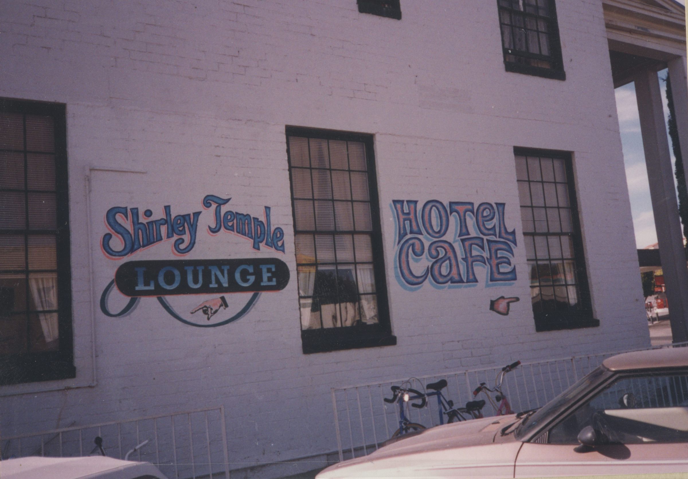 Boulder Dam Hotel sign for the Shirley Temple Lounge and Hotel Cafe, November 1992; Dennis McBride photosCollection