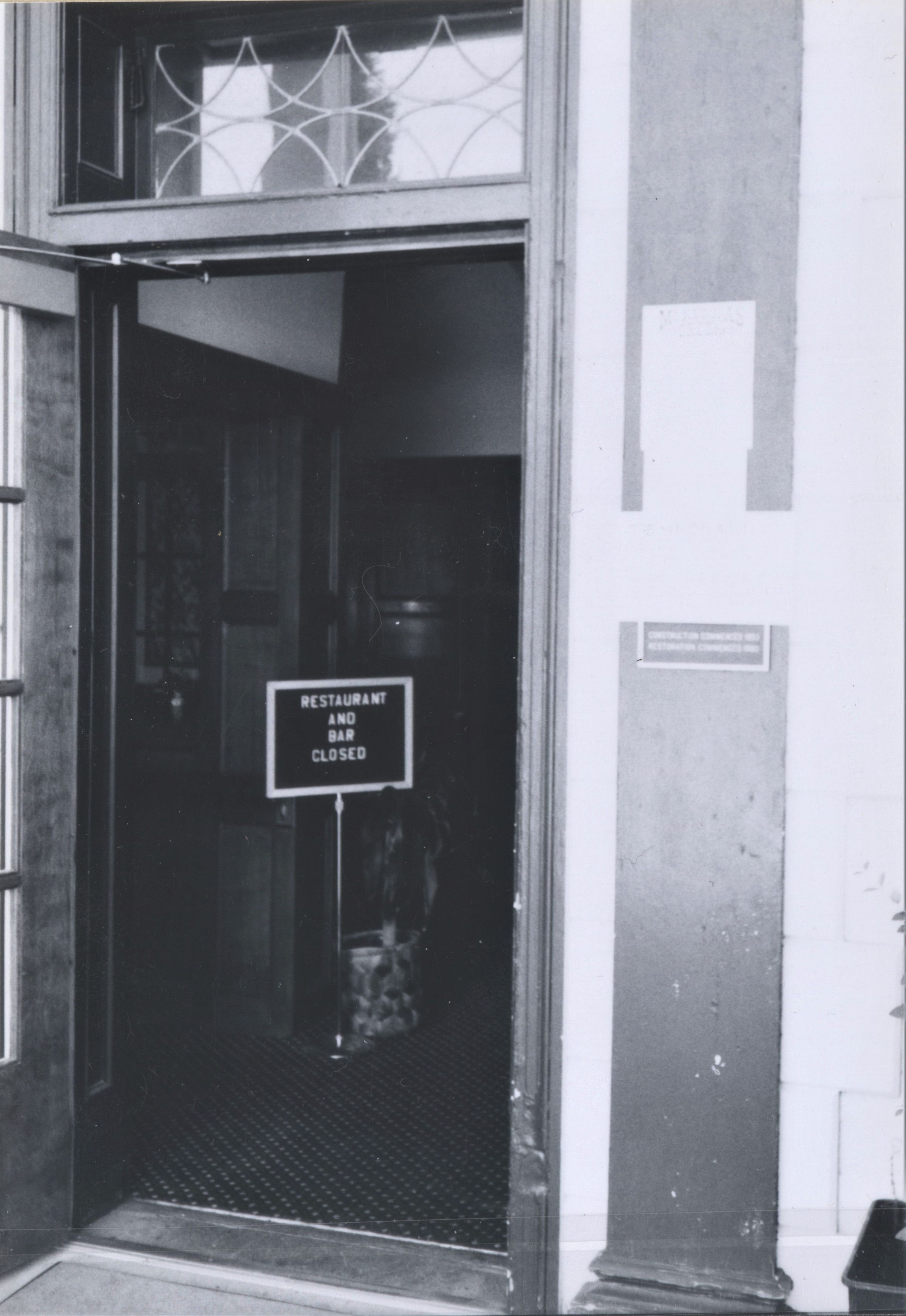 Boulder Dam Hotel storm damage to roof, July 1983; negative image #1a; Dennis McBride photosCollection