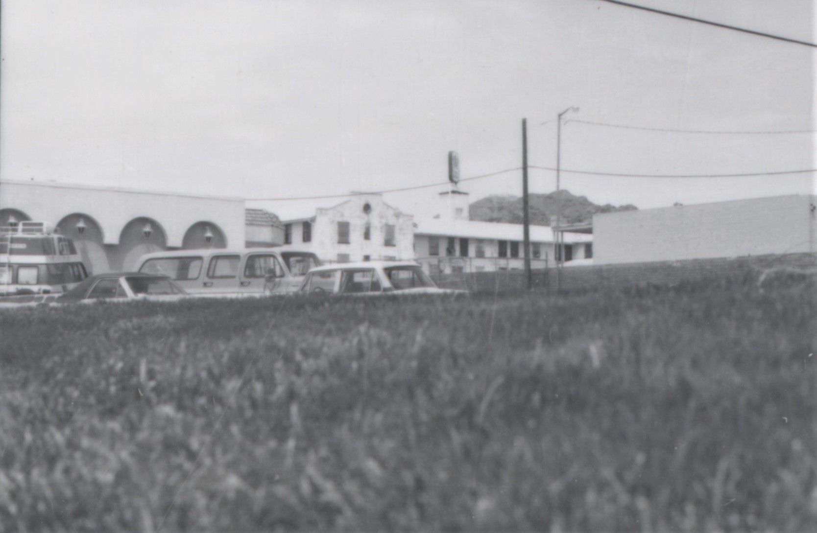 Boulder Dam Hotel; two long views looking to the northwest from Wyoming St., May 1980; negative image #16; Dennis McBrideCollection