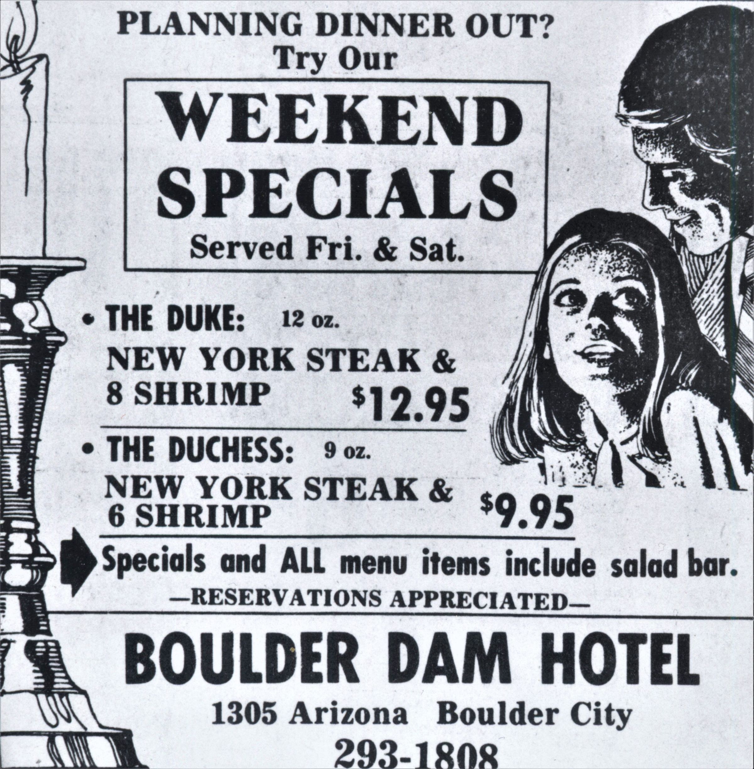 Boulder Dam Hotel- Weekend special" advertisement September 1981Entry/Object ID