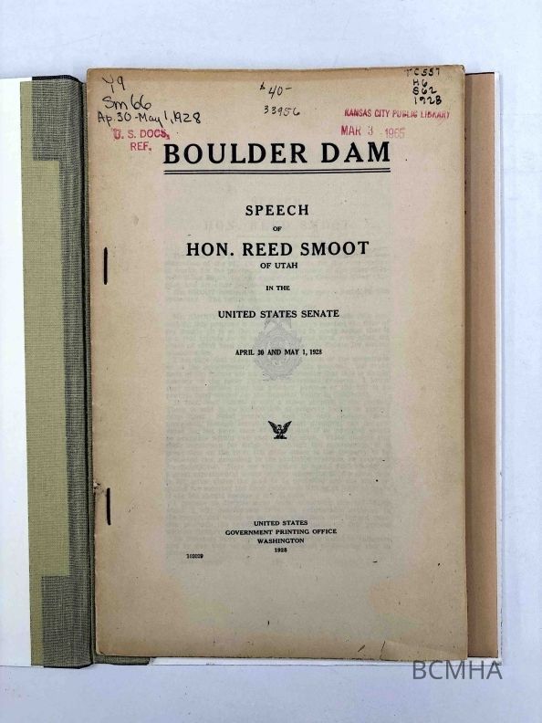 Boulder Dam, Speech of Hon. Reed Smoot of UtahEntry/Object ID