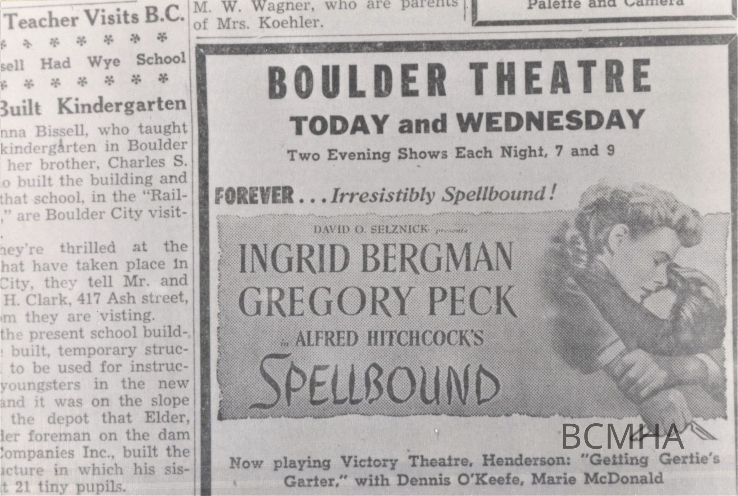 Boulder Theatre advertisements; Spellbound; Boulder City News, Th., March 5, 1946, p.4Collection