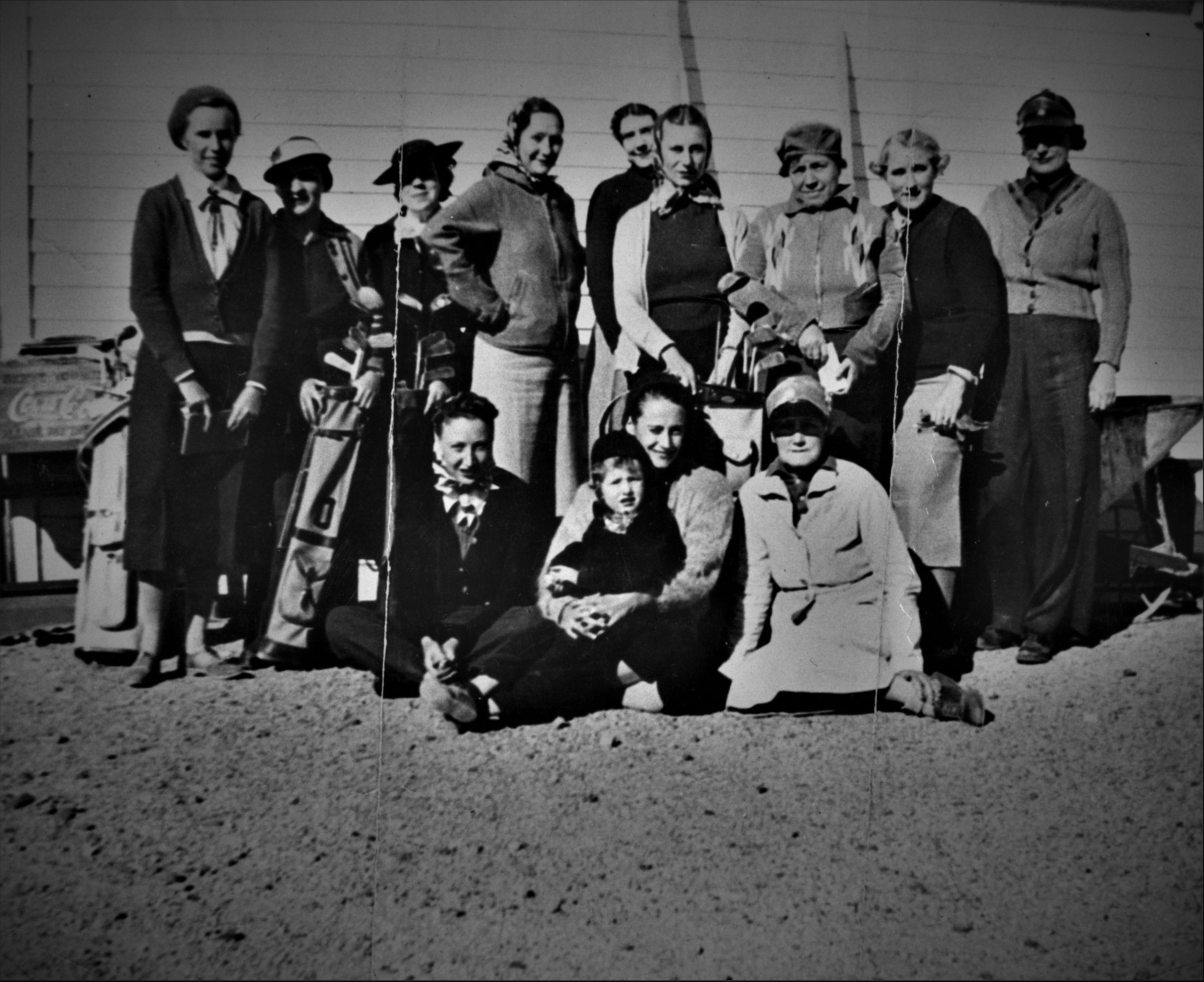 Notes: Note: "Boulder City women took full advantage of the course, too. Shown in front of the clubhouse in this early 30's photo are (standing, l-r) Mabel Schoppe, Sammy Webb, Blanche Christianson, Mae Rude, Mary Jane Burgett, Dot Hayward, Alice Doolittle &
