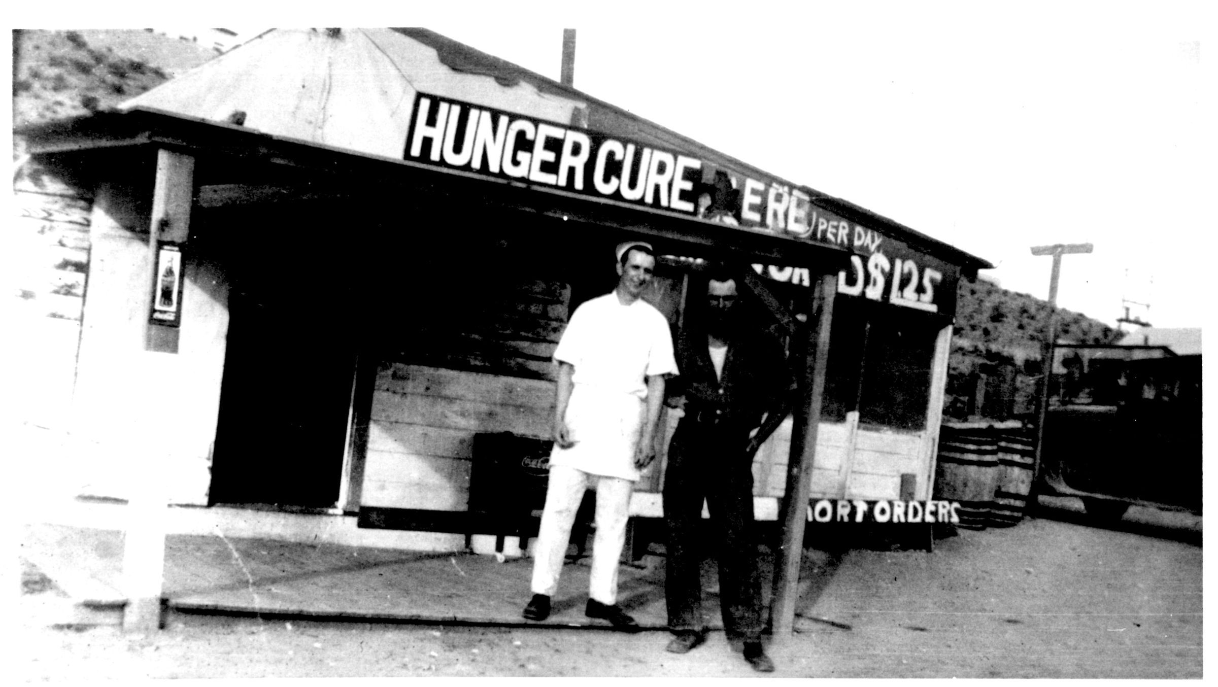 Boulder City restaurants, cafes, coffeehouses: Hunger Cure* 1932 (on lower Colorado St. facing the St.; Frank Crowe's house on the hill, upper left)