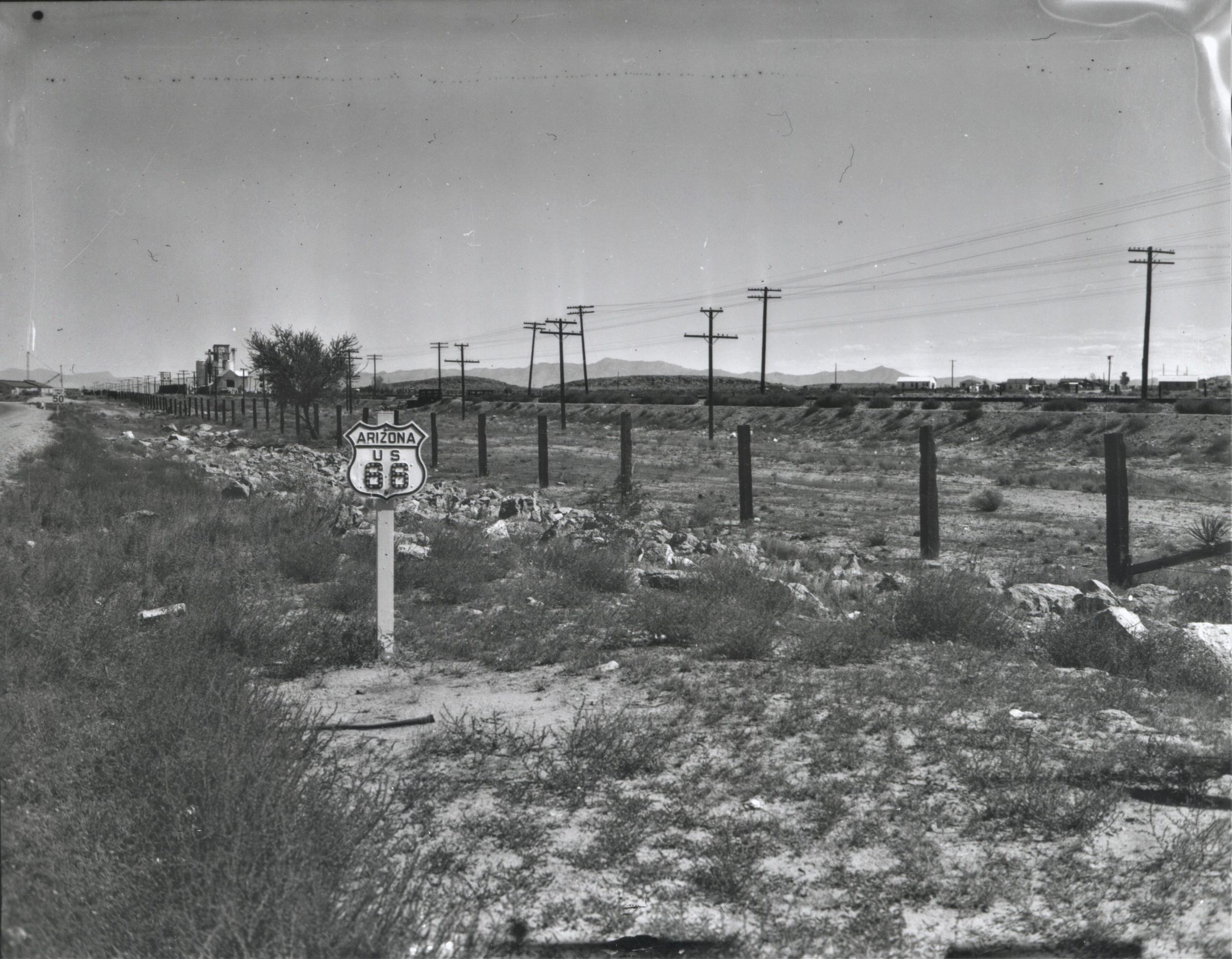 Roads and streets: Route 66 through Arizona with sign, c. 1930sCollection