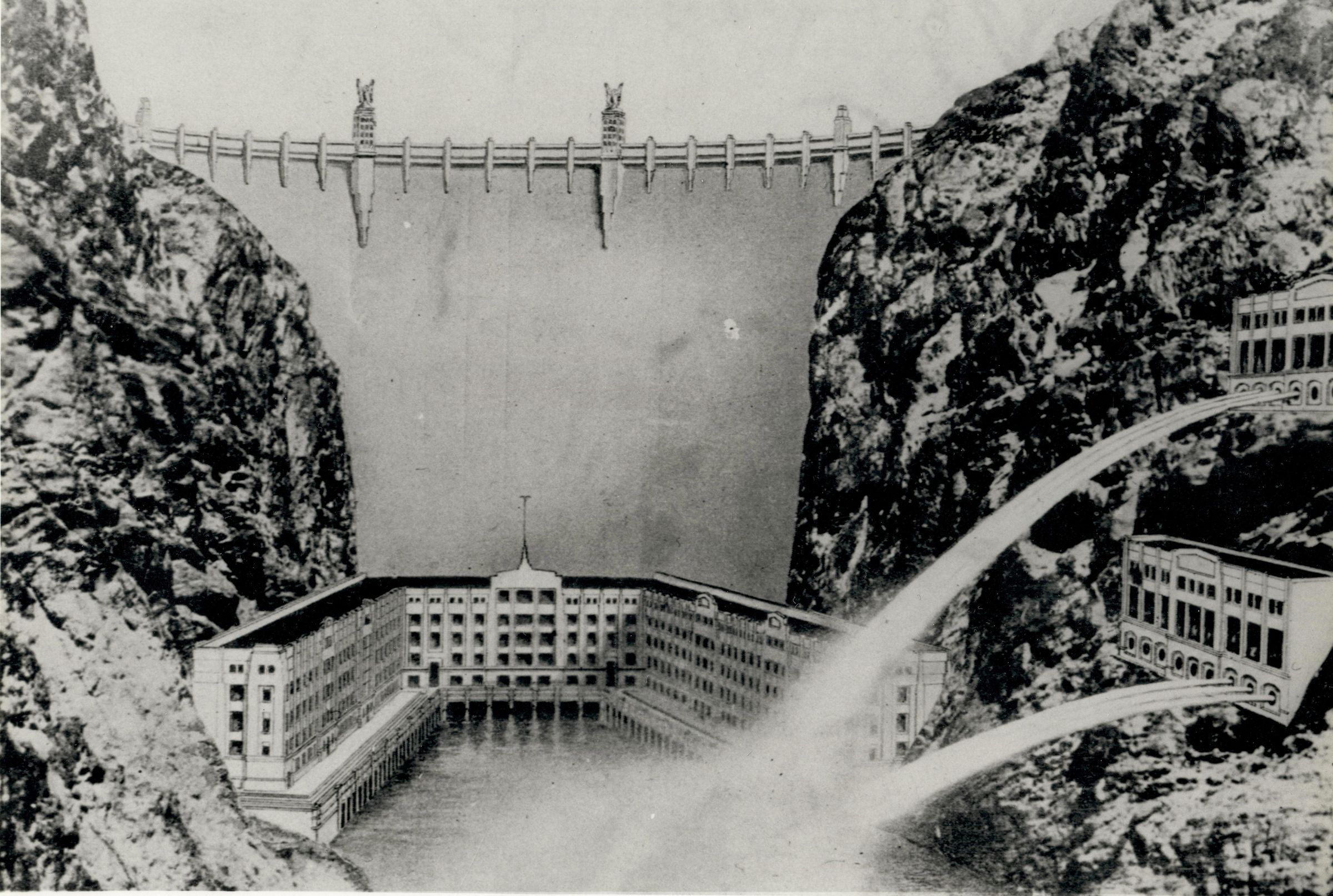 Hoover Dam - "Graphic Views of Hoover Dam: Hoover Dam as it will appear when finished (artist's conception)." 1930-31; Photo #7 by W. A. Davis: Roll 6 - Photo No. 6 Copy Negative - Bureau of Reclamation; Winthrop Davis, photographerCollection
