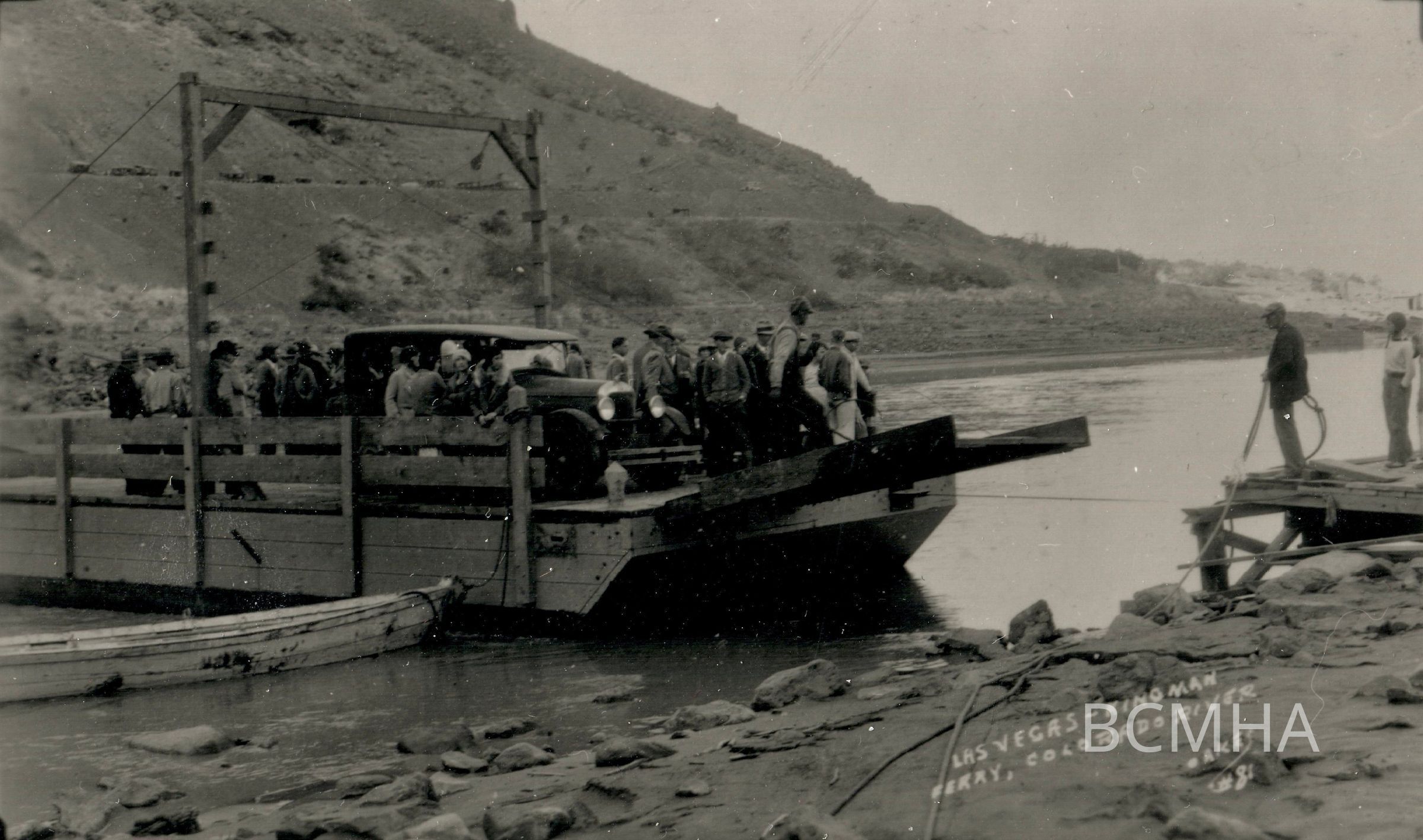 Catwalk across Colorado River - Las Vegas - Kingman Ferry, Colorado River: Auto Ferry on Colorado '32; UNLS - Wieking Collection #76-64-67czCollection