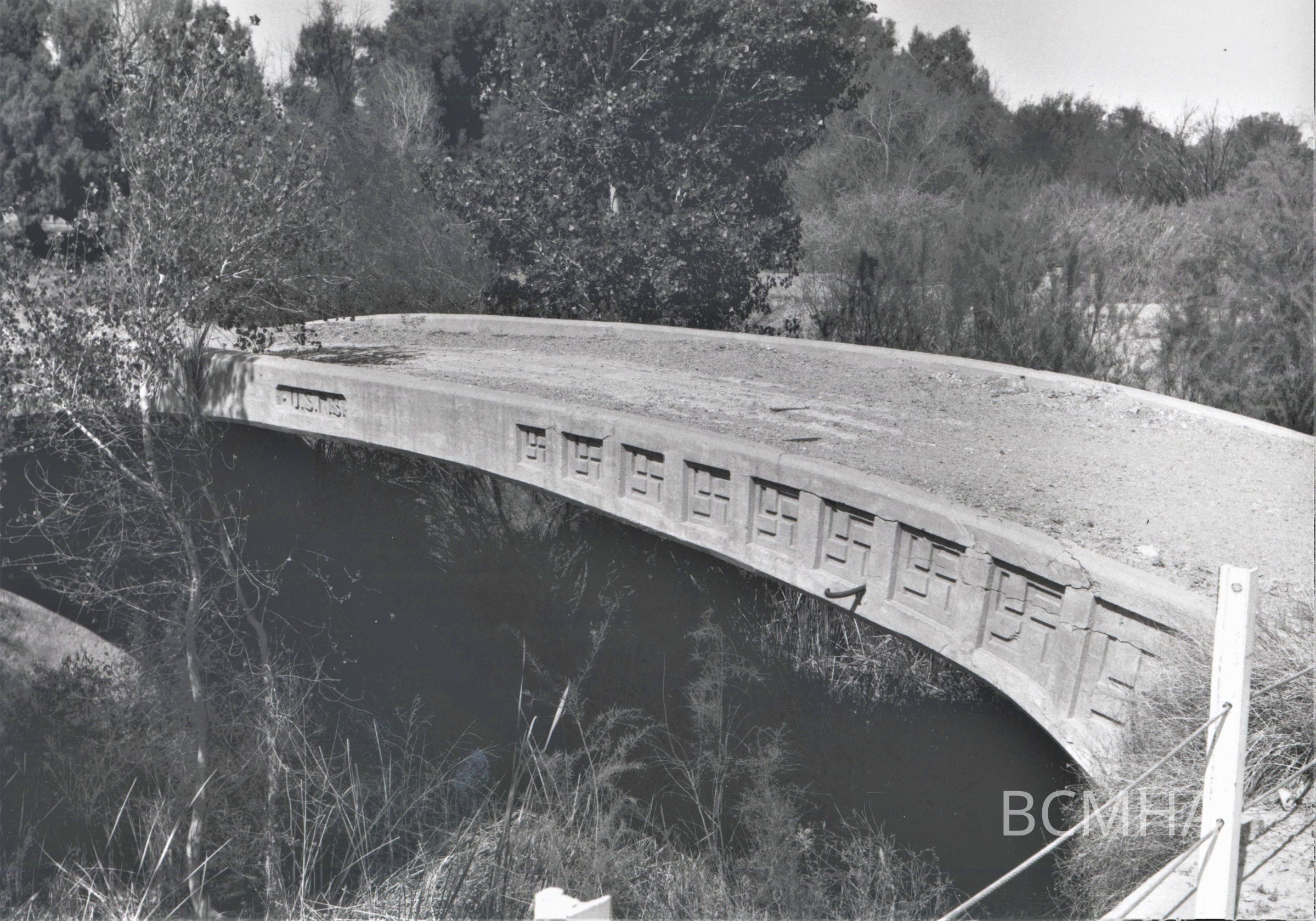 Colorado River bridge at Laguna Dam near Yuma, Arizona built ca. 1907; note swastika decoration and U.S.R.S.; United States Reclamation Service; photo taken in 1982; Dennis McBride, photographerCollection