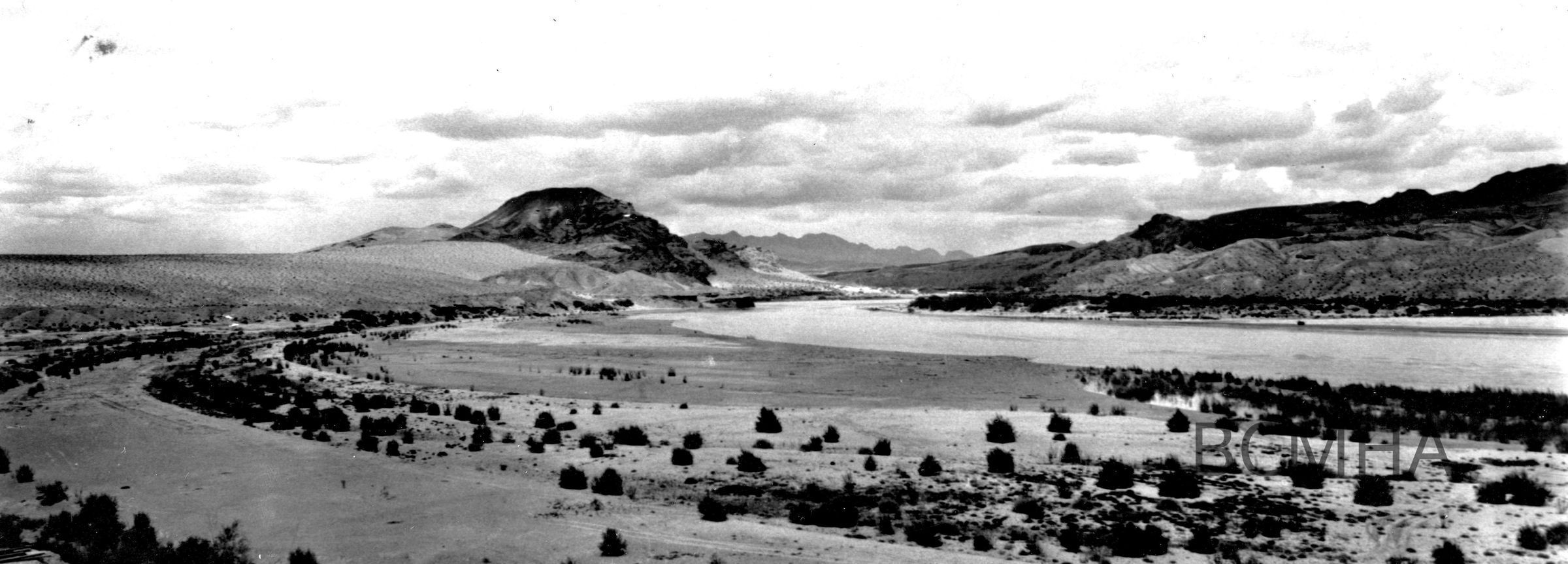 Colorado River entrance to Black Canyon, c. summer 1931; "Colorado River in the middle of the summer at its low stage. Flowing at this time less than 4,000 second feet."; Photo #A 7 by W. A. Davis; Roll 46 - Photo no. 3; Copy Negative - Bureau of ReclamationCollection