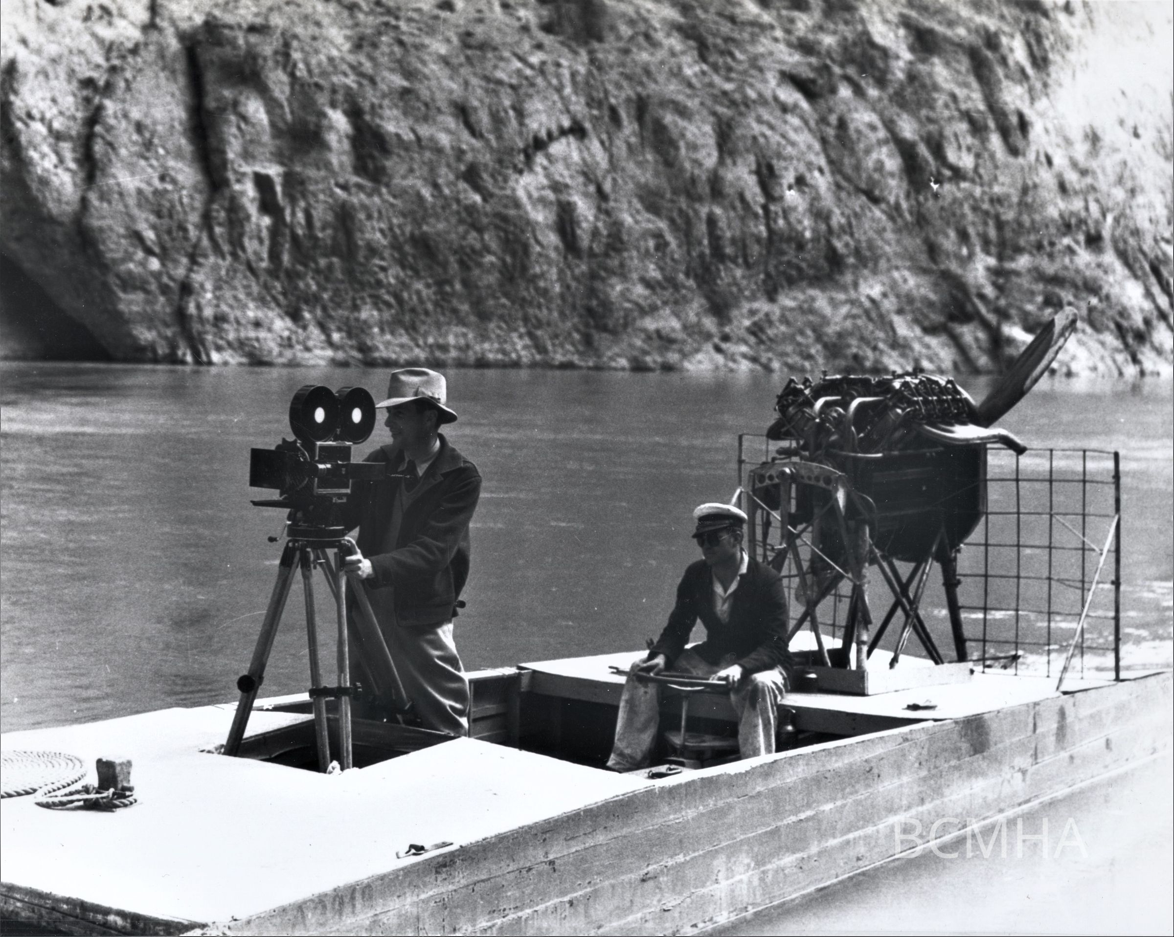 Colorado River - Murl Emery's airplane engine-propelled flat boat, the Flying Fish.; "Airplane motor propelled boat used in photographic survey of Colorado River between dam and Jumbo Wash. March 16, 1935"; see MS 10; USBR photo P45-301-3051 NA; Bernard Glaha, photographerCollection