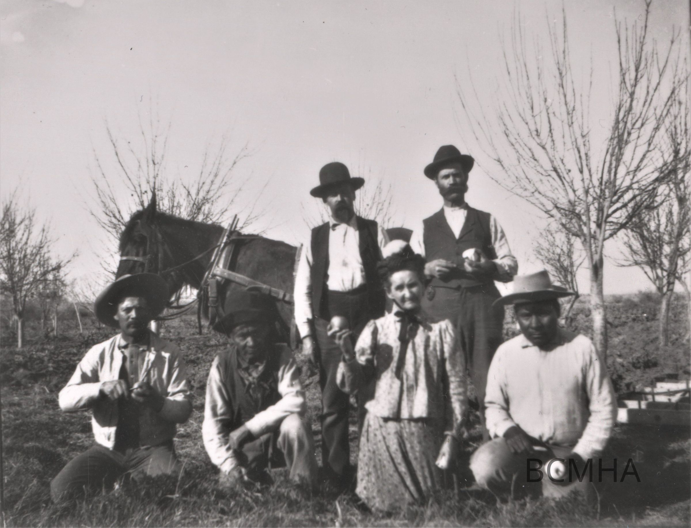 Enjoying apples grown on the Kiel Ranch, ca. 1890s-1900s [note the Paiute/Hispanic men]Entry/Object ID