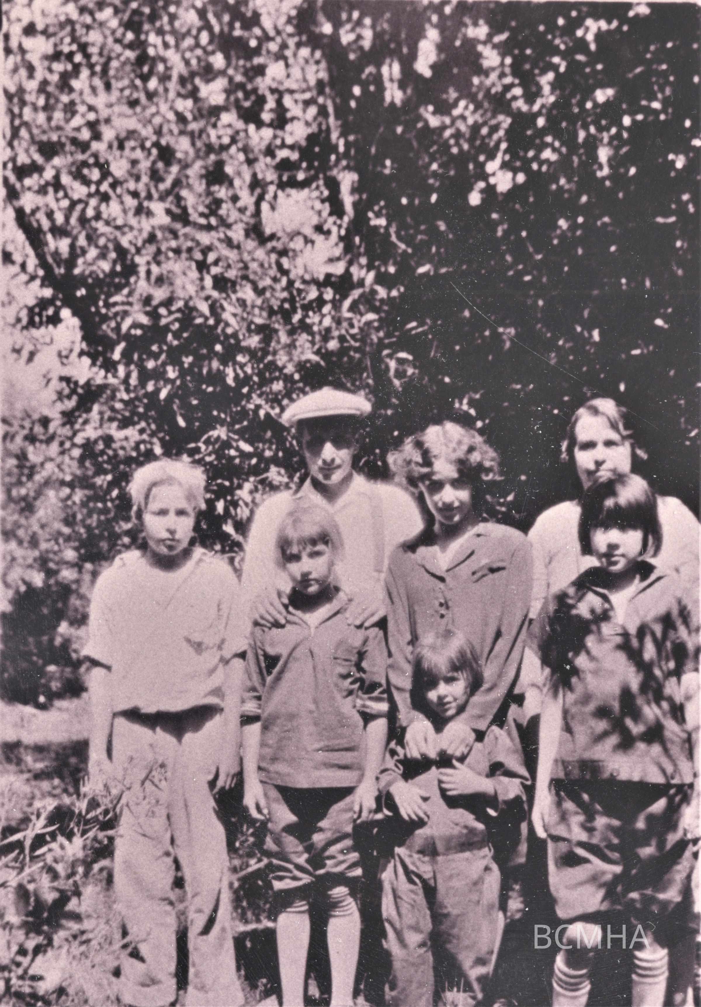 back row, l-r: Mark Lorenzo Jenne [father]; Ella Jean Jenne [sister]; Ida Belle [Frank] Jenne [mother]; front row, l-r: Floyd Jenne; Clara Elaine Jenne [sister]; Frances Ortel Jenne [sister]; Katherine Hagen [adopted sister], 1928.Collection