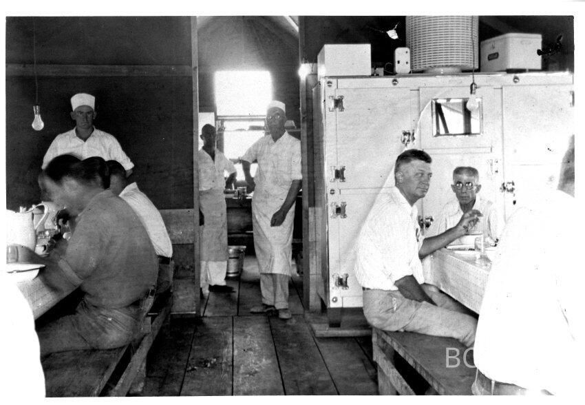 Interior of mess hall at Government Survey Camp; Hemenway Summit; Sept. 4, 1930; O.G. Patch, PhotographerMade/Created