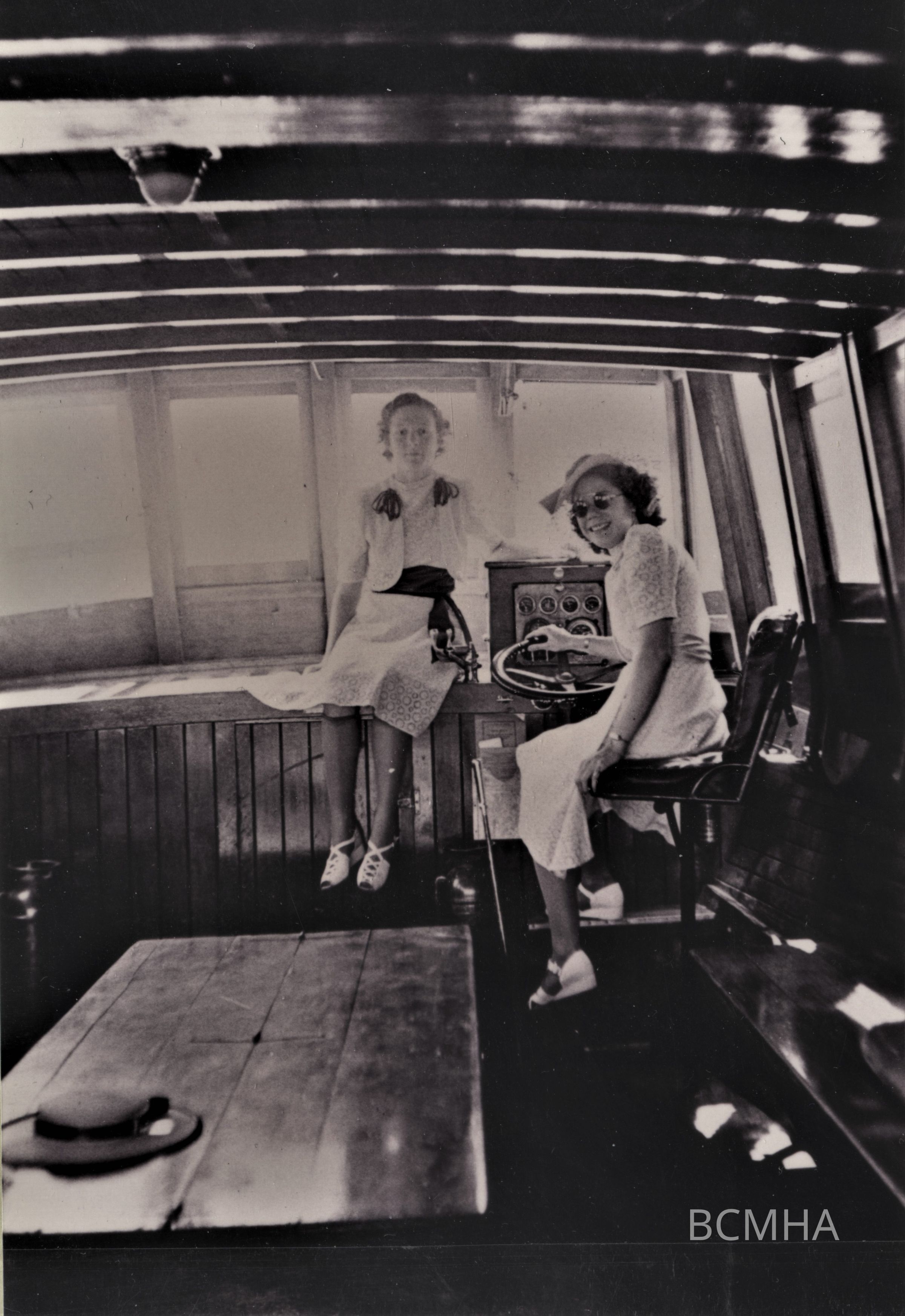 Grand Canyon- Boulder Dam Tours, Inc., 1939-41: l-r: unidentified; Therese Courture [Thomas] inside a GCBDT tour boat; Therese Courture Thomas photosCollection