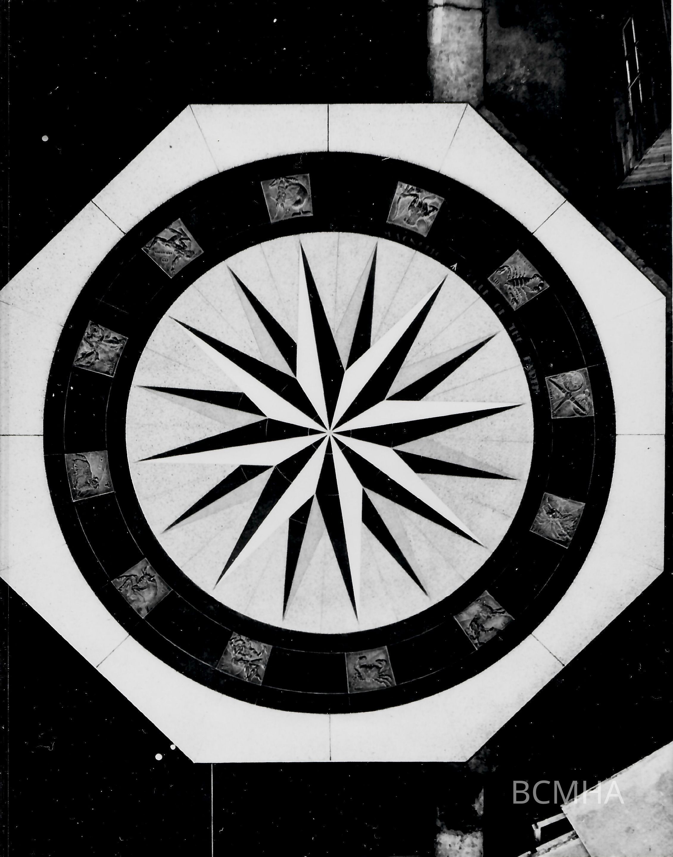 Hoover Dam art and monuments: star map, November 20, 1940; "A portion of the terrazzo star map. This is a view of the compass and zodiac plaques."; USBR photo no. BCP 05159; Cliff Segerblom, photographerCollection
