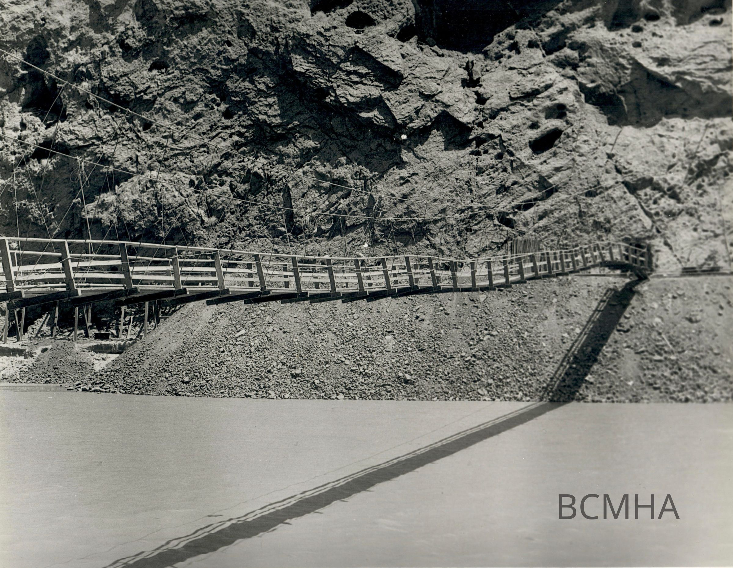 Hoover Dam - construction: "Catwalk over the Colorado River, Arizona tunnel adit and cable footbridge." 6-2-31; Water and Power Resources Service photo by O. G. Patch; USBR photo P45-301-703Collection