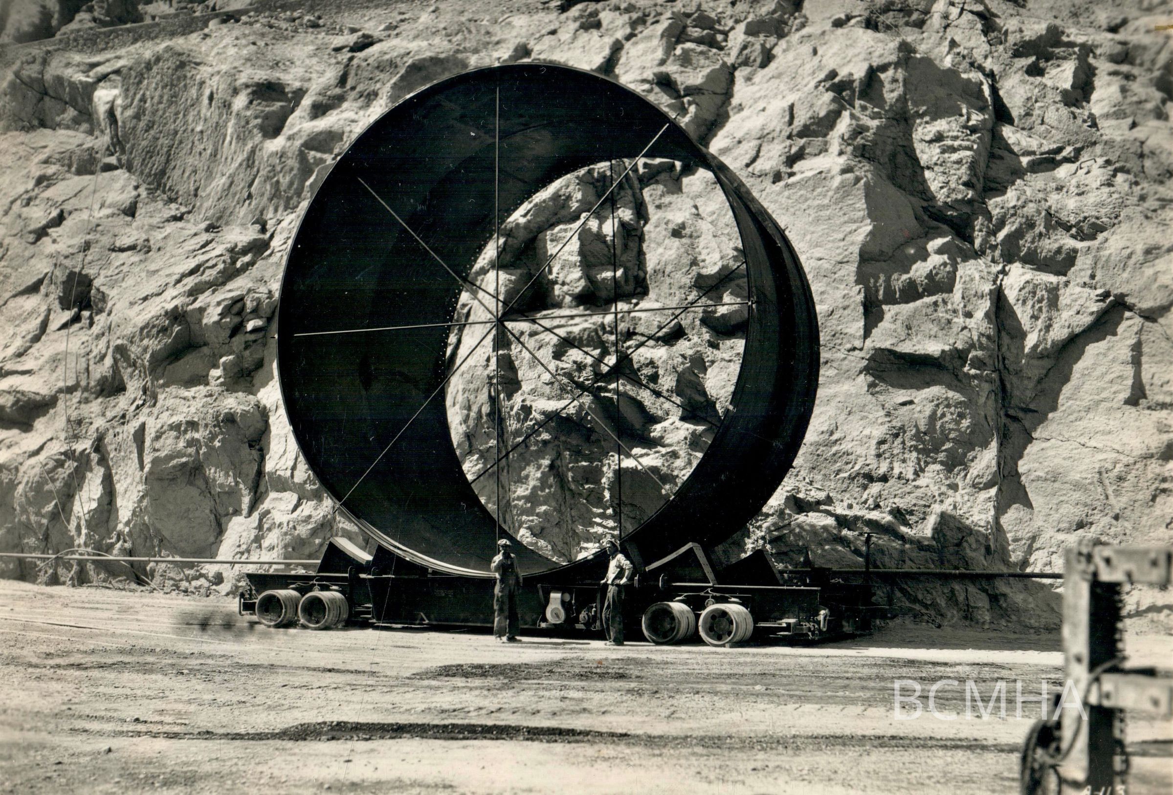 Hoover Dam construction: penstocks hauling, c. 1936; Vegas Studio, Las Vegas, NVCollection