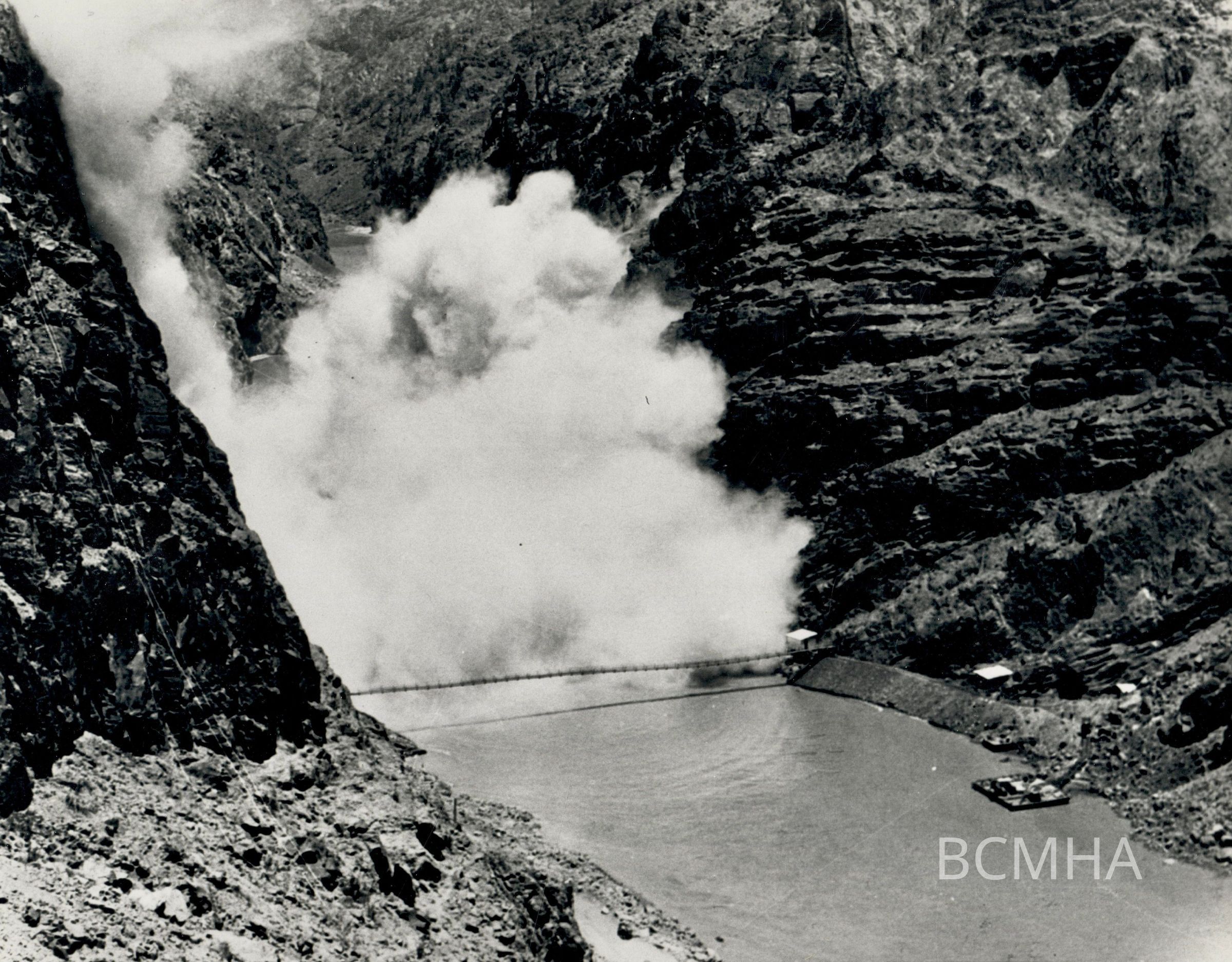 Hoover Dam - construction: "Blast above tunnel outlets, Nevada side." 7-2-31; O. G. Patch, photographer; USBR photo P45-300-0725 NACollection