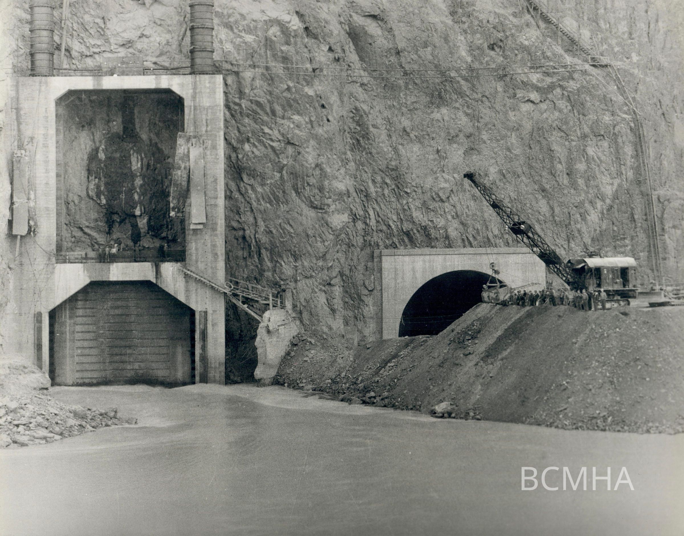 Hoover Dam construction: "Start of reservoir regulation. Bulkhead gate at entrance to Diversion Tunnel No. 4 in lowered position." 2-1-35; B. D. Glaha, photographer; USBR photo/BCP 02876Collection