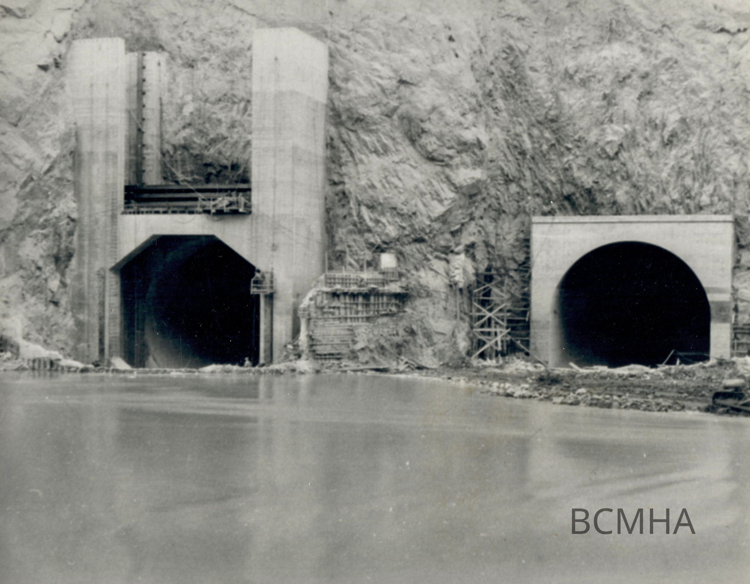 Hoover Dam construction: "Graphic Views of Hoover Dam Diversion tunnels Nos. 3 and 4 ready to receive the Colorado River." Circa Just prior to 11-14-32; W. A. Davis Collection Photo #139; Roll 13 - Photos No. 8 Copy Negative - Bureau of ReclamationCollection