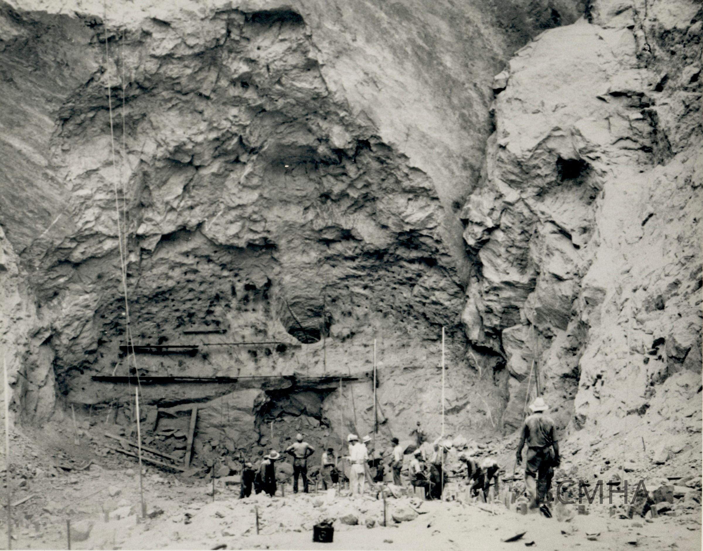 Hoover Dam construction: spillways, Arizona: "Upper end of Arizona inclined spillway tunnel." 9-17-32; W. A. Bechtel Collection Photo #1605 - Volume Two; Roll 26 - Photo No. 3 Copy Negative - Bureau of ReclamationCollection