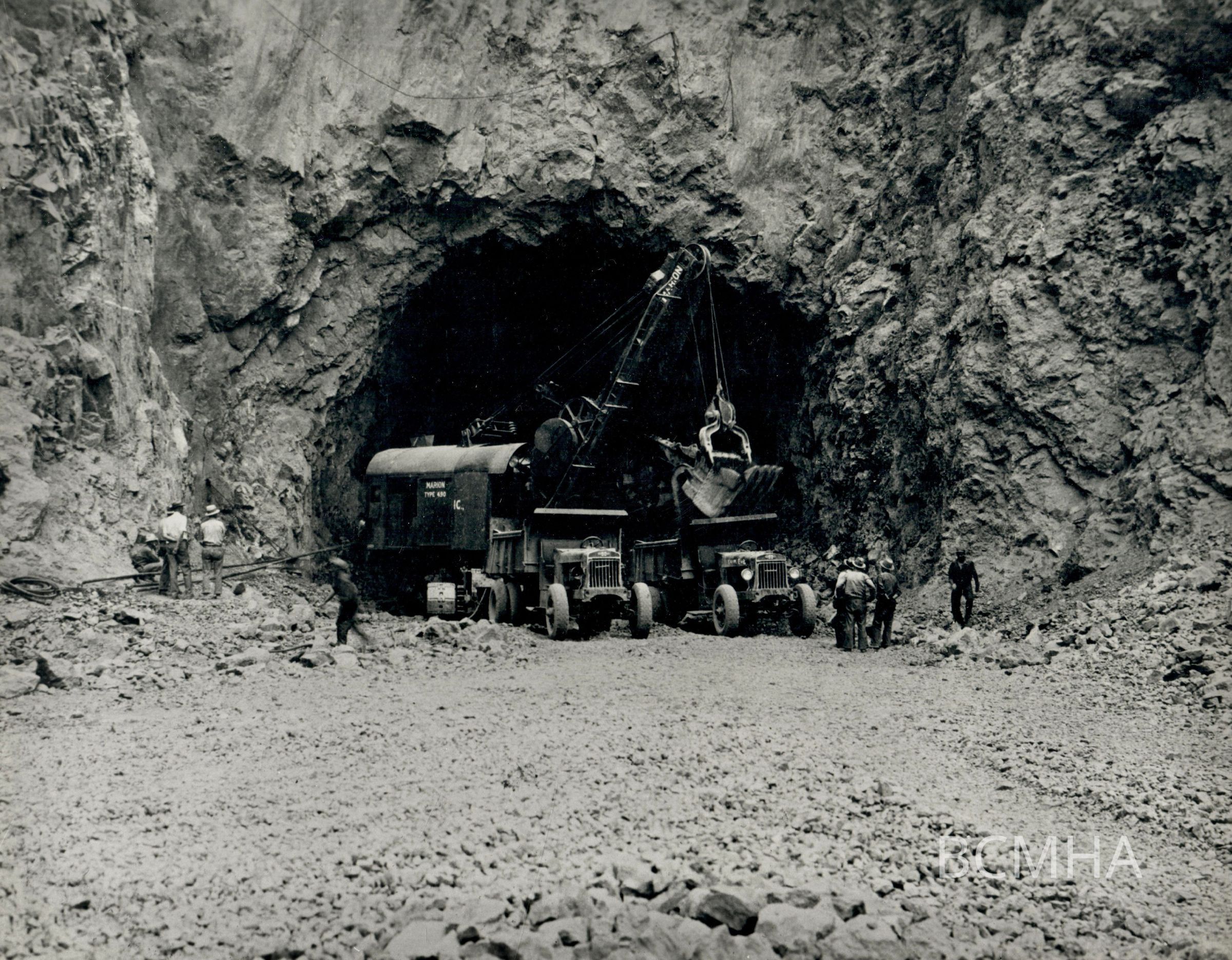 Hoover Dam construction: "Shovel excavating muck in outlet of Arizona Spillway Tunnel. View shows upper in 36' full 56' bore." 9-25-31; Photo by Paul A. Jones; USBR photo/Perm No. 00836Collection