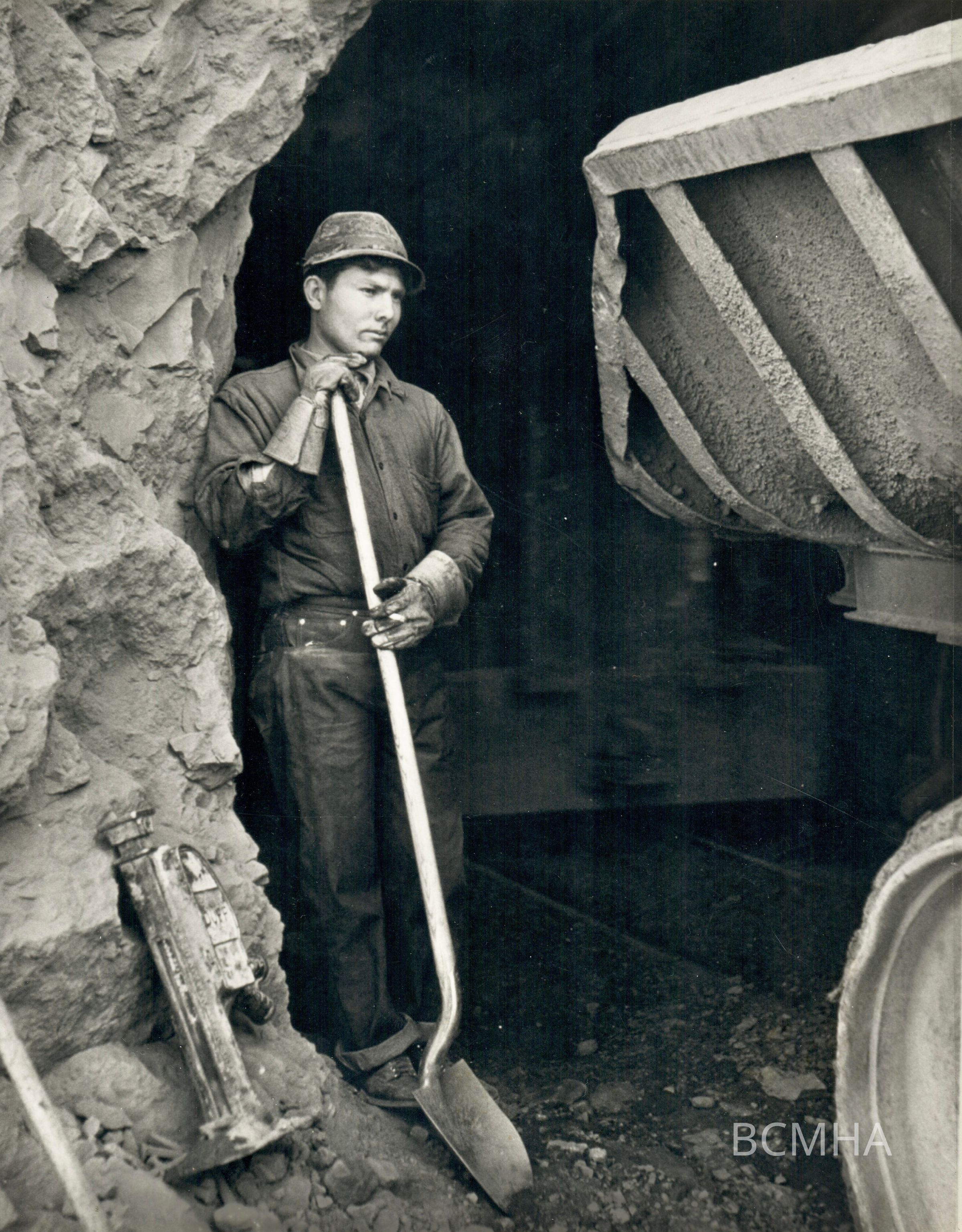 Hoover Dam construction: workers, 1932-1935: "Mucker with 8-ton truck." [Indian laborer?] Circa 1932-33; Boulder City Library Association; Volume II - 1933-1939; Roll 1 - Photo No. 8 Copy Negative - Bureau of ReclamationCollection