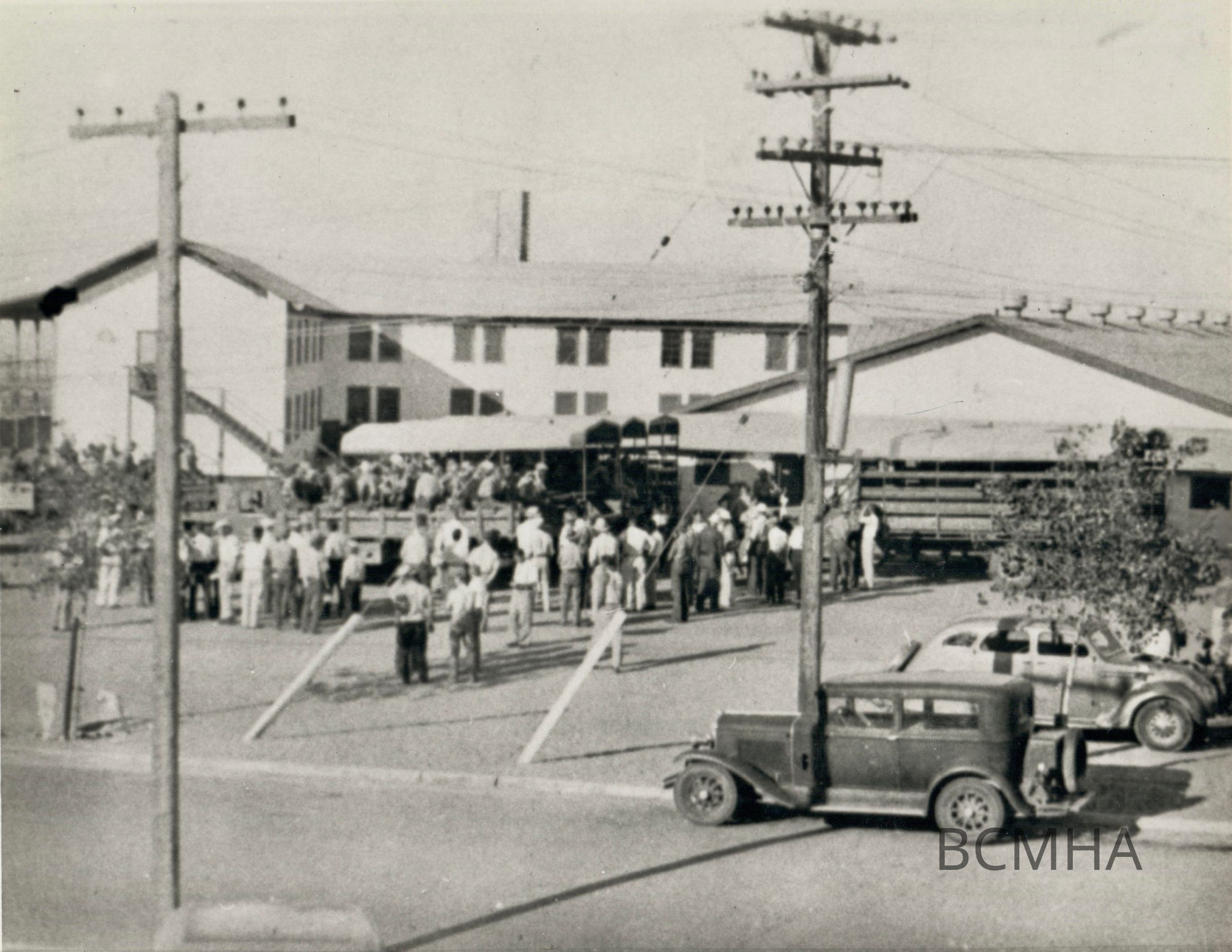 Hoover Dam - construction: workers: Labor strike, July 1935 [UNLV Historic Courtesy, Mr. Ragnald Fyhen Labor Strike, Boulder City, 1935] [0062 0041 (neg) folder 62 UNLV Library - Special Collections Copy Negative] [Bureau of Reclamation photo]Collection